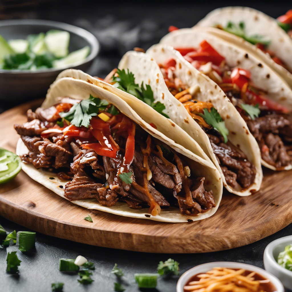 Korean BBQ Beef Tacos have a rich history that combines the flavors of Korean and Mexican cuisine. This fusion dish gained popularity in the United States, particularly in cities with diverse culinary scenes like Los Angeles and New York. Chefs like Roy Choi, known for his innovative Korean-Mexican fusion cuisine, played a significant role in popularizing this dish. The succulent marinated beef, often bulgogi-style, is grilled to perfection and then wrapped in a warm tortilla with fresh toppings like kimchi, cilantro, and a drizzle of spicy gochujang sauce. Today, the best versions of this dish can be found in trendy food trucks and modern Korean-Mexican fusion restaurants across the country. The key to a delicious Korean BBQ Beef Taco lies in the balance of sweet, savory, and spicy flavors, as well as the quality of the beef and the freshness of the accompanying ingredients. Whether it's a traditional recipe or a creative twist, these tacos are a must-try for food enthusiasts looking for a unique and flavorful dining experience.