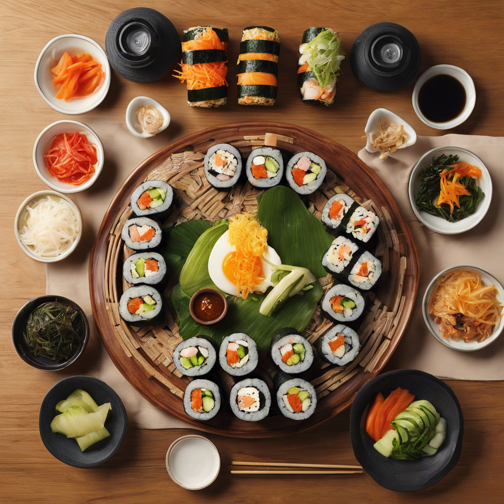 Korean Gimbap, also known as Kimbap, is a popular Korean dish that originated in the early 20th century. It was inspired by Japanese sushi and was initially made with just rice and pickled vegetables. Over time, the recipe evolved to include various fillings such as seasoned vegetables, egg, and meat, all rolled in seaweed and sliced into bite-sized pieces. Gimbap gained popularity as a convenient and portable meal, perfect for picnics and on-the-go eating. Today, it is a staple in Korean cuisine and can be found in restaurants and street food stalls across South Korea. The best Gimbap can be found in Seoul, particularly in the Gwangjang Market, where vendors meticulously prepare and roll the perfect Gimbap. The key to a delicious Gimbap lies in the freshness of the ingredients and the skillful rolling technique, ensuring a harmonious blend of flavors and textures in every bite. For a twist on the traditional Gimbap, some chefs incorporate unique ingredients like bulgogi (marinated beef) or spicy tuna, adding a delightful twist to this classic dish.