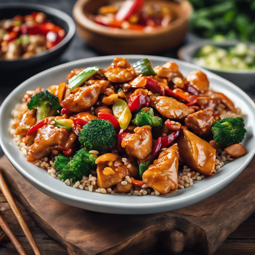 Kung Pao Chicken with Stir-Fried Vegetables is a classic Sichuan dish that originated in the Sichuan province of China. This iconic dish is known for its bold flavors, combining tender chunks of chicken with crunchy vegetables and roasted peanuts, all tossed in a spicy, savory sauce. Legend has it that the dish is named after Ding Baozhen, a Qing Dynasty official who loved the spicy flavors of Sichuan cuisine. Today, this dish can be found in Chinese restaurants worldwide, but for an authentic experience, head to Sichuan province or renowned Sichuan restaurants. The key to a perfect Kung Pao Chicken lies in the balance of heat from the chilies, the tanginess of the vinegar, and the umami of the soy sauce. Mastering the art of stir-frying is also crucial to achieving the perfect texture and flavor. For a twist on the traditional recipe, some chefs add Sichuan peppercorns for a numbing, citrusy flavor. Whether you're a fan of fiery Sichuan cuisine or just love a good stir-fry, Kung Pao Chicken with Stir-Fried Vegetables is a dish that never fails to impress.