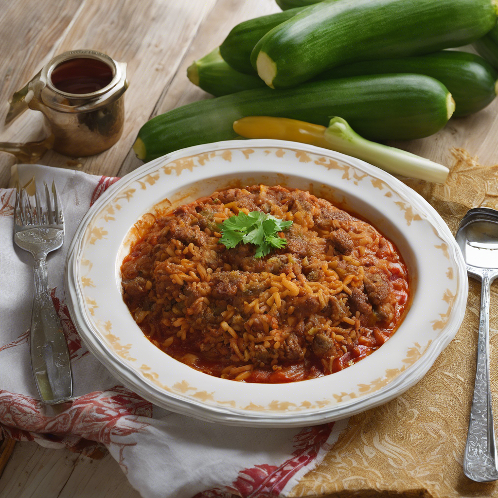 - Stuff the hollowed zucchinis with the rice and meat mixture, leaving a little space at the top for the rice to expand. Place the stuffed zucchinis in a deep baking dish.