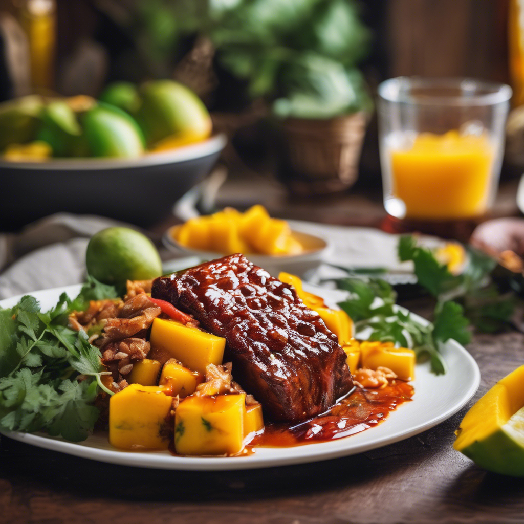 Lechón Asado, a traditional dish from the Caribbean, is a succulent roasted pork with a rich history dating back to the indigenous Taíno people. The dish has evolved over centuries, with each culture adding its own unique twist. The addition of a spicy mango glaze brings a tantalizing tropical flavor to this beloved classic. Renowned chefs in Puerto Rico and the Dominican Republic have perfected this recipe, infusing the pork with a tantalizing blend of spices and marinating it in a zesty mango glaze. The result is a mouthwatering fusion of sweet, spicy, and savory flavors that is sure to delight any palate. For the best version of this dish, head to the streets of Old San Juan or Santo Domingo, where local vendors expertly roast the pork over open flames, infusing it with a smoky aroma that perfectly complements the spicy mango glaze. To recreate this culinary masterpiece at home, it's essential to source high-quality pork and ripe, juicy mangoes to achieve the perfect balance of flavors. Whether enjoyed at a bustling market or prepared in your own kitchen, Lechón Asado with a spicy mango glaze is a true celebration of Caribbean cuisine.