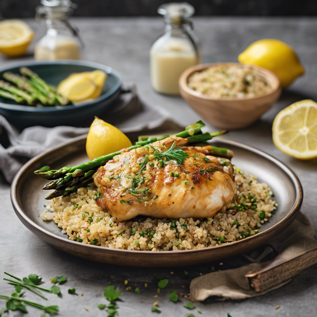 Lemon Garlic Chicken with Asparagus and Quinoa is a delightful and healthy dish that has gained popularity in recent years. This dish is a perfect blend of flavors, combining the zesty tang of lemon, the aromatic essence of garlic, and the earthy taste of asparagus with the nutty texture of quinoa. It is a favorite among health-conscious food enthusiasts and has become a staple on the menus of many modern restaurants and cafes. The origins of this dish can be traced back to the Mediterranean region, where the use of fresh and vibrant ingredients is a culinary tradition. Renowned chefs in this region have perfected the art of preparing this dish, infusing it with their unique culinary expertise and creativity. The key to a perfect Lemon Garlic Chicken with Asparagus and Quinoa lies in the balance of flavors and the quality of ingredients. The succulent chicken marinated in a zesty lemon and garlic sauce, paired with tender-crisp asparagus and fluffy quinoa, creates a harmonious symphony of tastes and textures. For those seeking the best version of this dish, visiting Mediterranean-inspired restaurants or those with a focus on healthy, flavorful cuisine is highly recommended. Additionally, home cooks can experiment with alternative methods, such as grilling the chicken for a smoky flavor or adding a touch of honey to the lemon garlic marinade for a hint of sweetness. In conclusion, Lemon Garlic Chicken with Asparagus and Quinoa is a dish that embodies the essence of Mediterranean cuisine, offering a delightful and wholesome dining experience. Whether enjoyed at a renowned restaurant or prepared at home with a personal touch, this dish is sure to satisfy the palate and nourish the body.