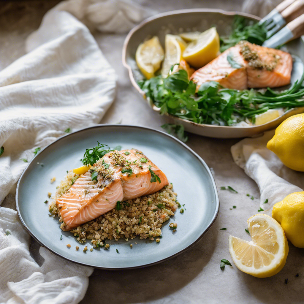 Lemon Garlic Roasted Salmon with Quinoa is a delightful and healthy dish that has gained popularity in recent years. The dish features succulent salmon fillets marinated in a zesty blend of lemon, garlic, and herbs, then roasted to perfection. The quinoa, a protein-packed grain, is cooked to fluffy perfection and serves as a nutritious base for the flavorful salmon. This dish has become a favorite among health-conscious foodies and is often featured on the menus of trendy restaurants and cafes. Chefs often emphasize the importance of using fresh, high-quality salmon and infusing it with the vibrant flavors of lemon and garlic. For the best version of this dish, seek out restaurants that specialize in seafood or modern, health-focused cuisine. The key to mastering this dish lies in achieving the perfect balance of citrusy tang and savory garlic, while ensuring the salmon is tender and flaky. Whether enjoyed at a chic eatery or prepared at home, Lemon Garlic Roasted Salmon with Quinoa is a delightful culinary experience that satisfies both the palate and the body.