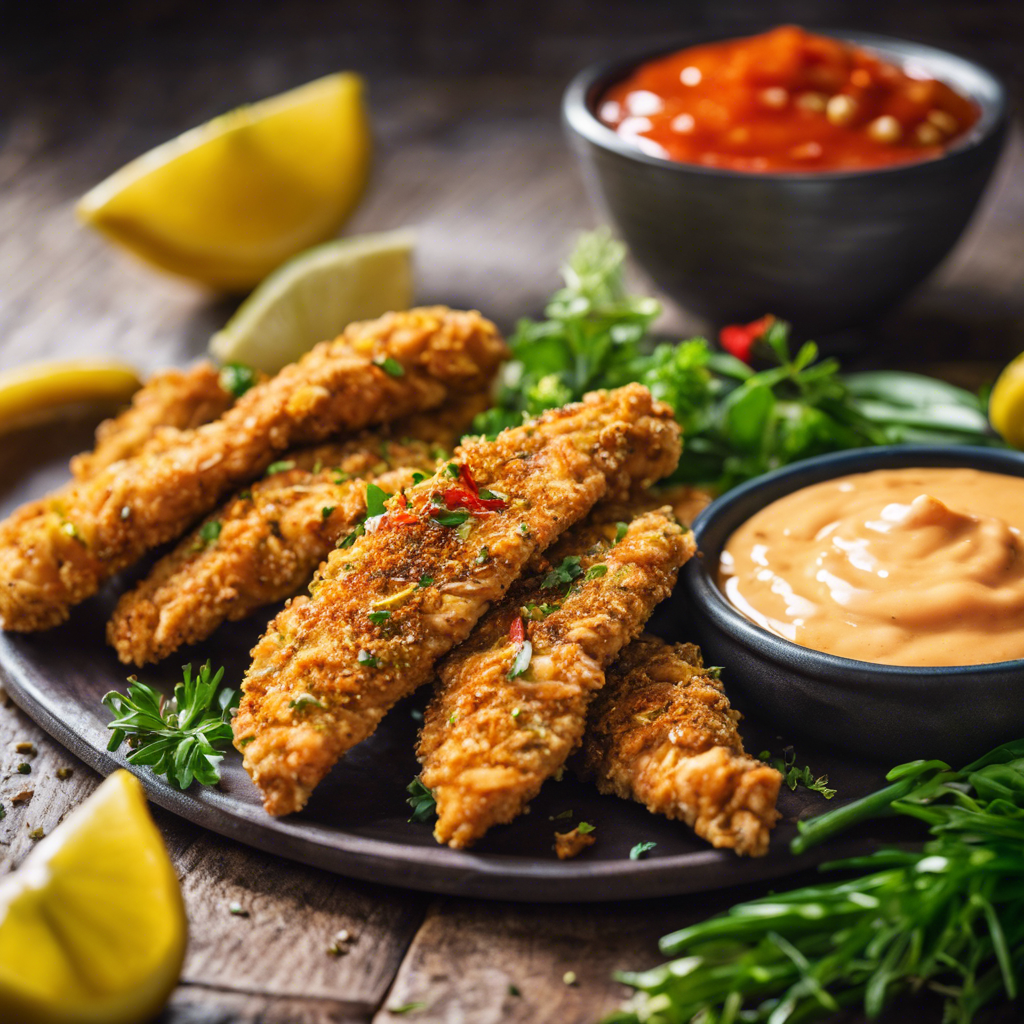 Lemon Herb Crusted Chicken Tenders with a spicy sriracha dipping sauce is a modern twist on a classic dish. This flavorful combination of zesty lemon, aromatic herbs, and fiery sriracha creates a tantalizing culinary experience. Originating in the kitchens of innovative chefs, this dish has gained popularity in restaurants across the globe. The succulent chicken tenders are coated in a crispy, herb-infused crust, while the sriracha dipping sauce adds a bold kick. This dish is a favorite in regions known for their bold flavors, such as the American South and Southeast Asia. For the best version of this dish, seek out restaurants that prioritize fresh, high-quality ingredients. The key to perfecting this dish lies in achieving the ideal balance of citrusy zest, savory herbs, and spicy sriracha. Whether enjoyed as an appetizer or a main course, these chicken tenders are sure to delight the taste buds with their harmonious blend of flavors.