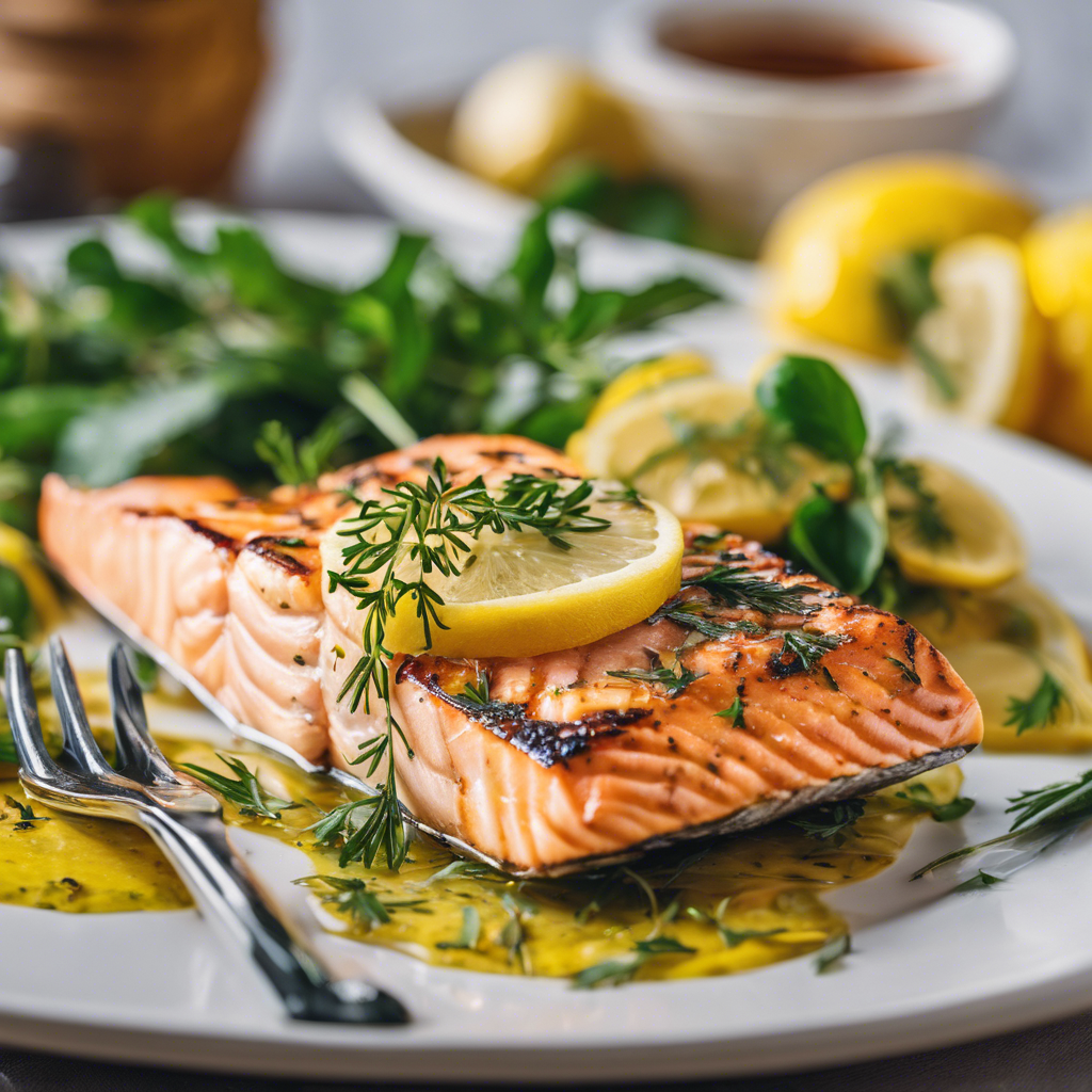 Lemon Herb Grilled Salmon is a classic dish that has been enjoyed for centuries. The combination of zesty lemon and aromatic herbs perfectly complements the rich, buttery flavor of the salmon. This dish has its roots in Mediterranean cuisine, where fresh herbs like dill, parsley, and thyme are abundant. Chefs in coastal regions, such as the Mediterranean and Pacific Northwest, have perfected the art of grilling salmon to perfection, infusing it with the flavors of the sea. The key to a great Lemon Herb Grilled Salmon lies in using high-quality, fresh ingredients and mastering the grilling technique to achieve a perfectly moist and flavorful result. For a twist, consider marinating the salmon in the lemon herb mixture before grilling to enhance the flavors even more. Whether you're dining at a seaside restaurant in Greece or a waterfront eatery in Seattle, you're sure to find a delectable version of this dish that will tantalize your taste buds.