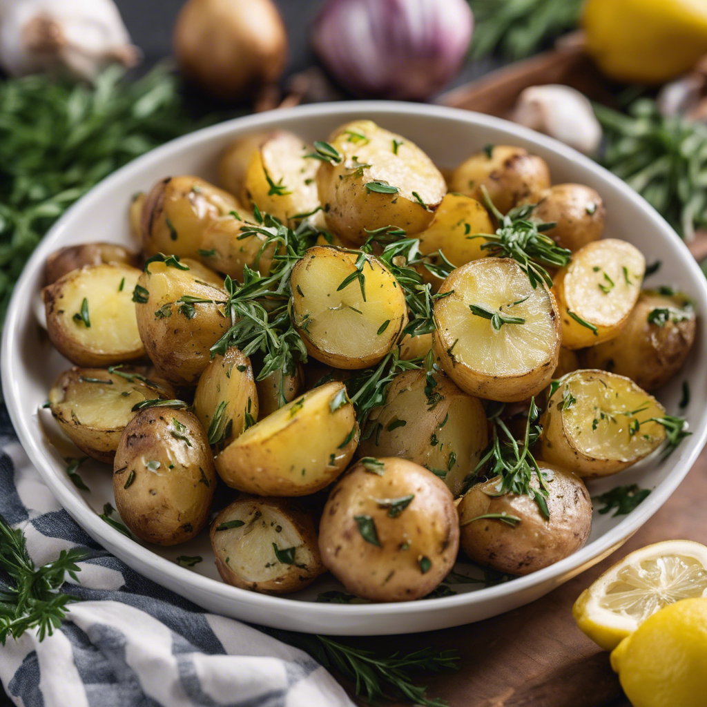 - Add the halved baby potatoes to the bowl and toss to coat evenly with the herb and lemon mixture. Season with salt and pepper to taste.