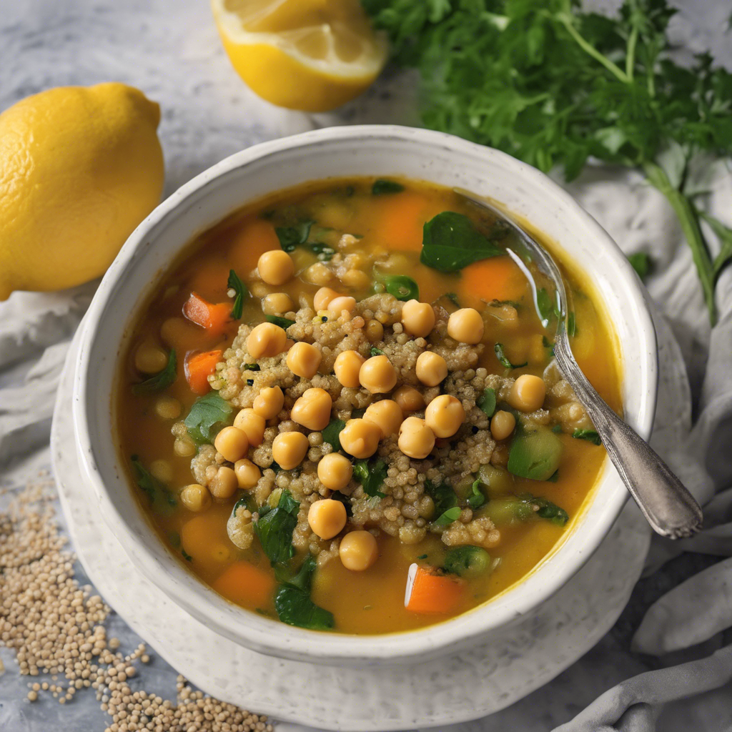 Lemon Vegetable Lentil Quinoa Soup with Chickpeas