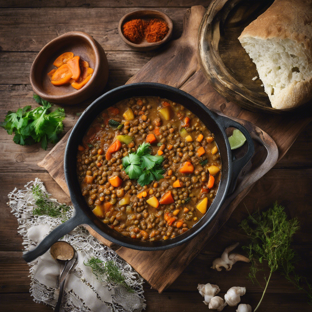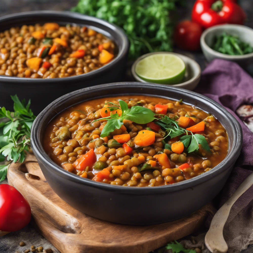 - Serve the spicy lentil and vegetable stew hot, garnished with fresh cilantro. Enjoy!