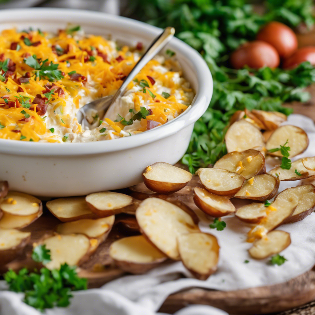 Loaded Baked Potato Dip is a creamy and indulgent appetizer inspired by the classic loaded baked potato. This dip typically features a base of sour cream and cream cheese, mixed with cheddar cheese, crispy bacon, and green onions, all seasoned to perfection. The dish originated in the United States, where it quickly gained popularity at parties, potlucks, and game day gatherings. Chefs and home cooks alike have put their own spin on this beloved dip, adding ingredients like ranch seasoning, garlic, and even diced jalapeños for a spicy kick. For the best version of this dish, head to Southern-inspired restaurants or barbecue joints, where it's often served alongside crispy potato skins or warm, crusty bread. Whether you're scooping it up with chips or veggies, Loaded Baked Potato Dip is a crowd-pleasing treat that's sure to disappear in no time.