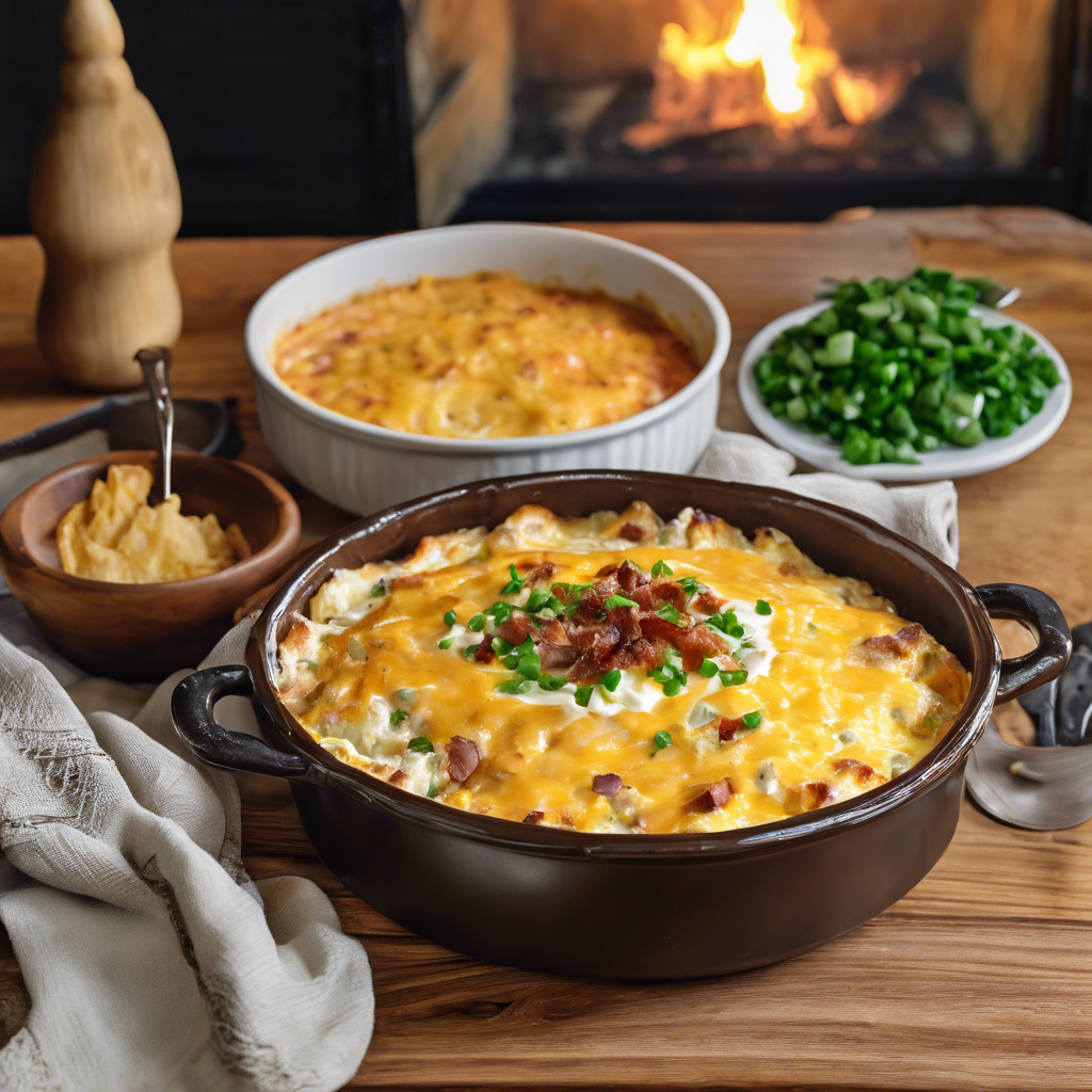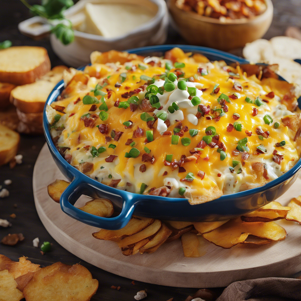Loaded Baked Potato Dip with melted cheese on top is a delectable appetizer that has gained popularity for its rich and indulgent flavors. This dish originated in the southern United States, where it was first created as a spin on the classic loaded baked potato. The creamy and savory dip is typically made with sour cream, cream cheese, cheddar cheese, bacon, and green onions, capturing the essence of a fully loaded baked potato. The addition of melted cheese on top takes this dip to the next level, adding a gooey and irresistible finish. Chefs and home cooks alike have embraced this dish, serving it at gatherings and events as a crowd-pleasing favorite. For the best version of this dish, look for a recipe that includes high-quality cheddar cheese and crispy bacon for an authentic and satisfying flavor. Whether enjoyed with crispy potato chips or warm bread, Loaded Baked Potato Dip with melted cheese on top is a must-try for any cheese and potato lover.