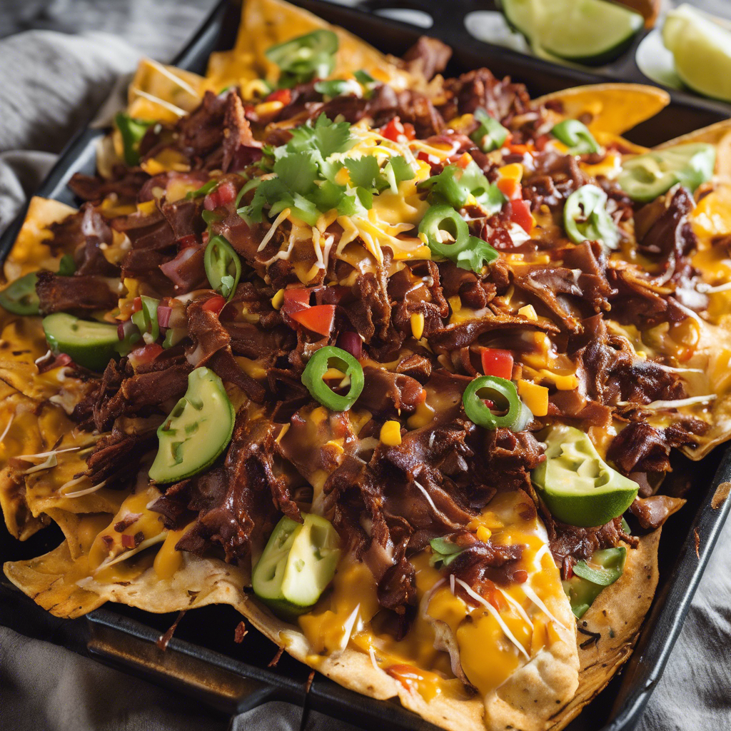 Loaded BBQ Brisket Nachos are a mouthwatering fusion of Tex-Mex and Southern barbecue flavors. This indulgent dish originated in the heart of Texas, where pitmasters slow-smoke brisket to perfection. The succulent, smoky brisket is then shredded and generously piled onto a bed of crispy tortilla chips. The nachos are then loaded with melted cheese, tangy BBQ sauce, creamy guacamole, zesty salsa, and a dollop of sour cream. This irresistible combination of flavors and textures has made Loaded BBQ Brisket Nachos a beloved staple in barbecue joints and Tex-Mex restaurants across the United States. For the best version of this dish, head to renowned barbecue spots in Texas or seek out restaurants with a passion for authentic Tex-Mex cuisine. The key to perfect Loaded BBQ Brisket Nachos lies in the quality of the brisket and the balance of flavors in the toppings. Whether you're enjoying them at a local eatery or making them at home, these nachos are sure to satisfy any craving for hearty, indulgent comfort food.