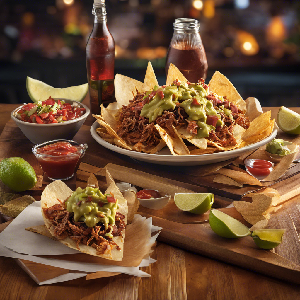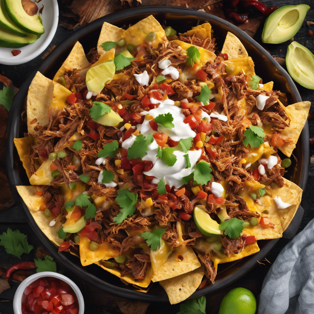 Loaded Pulled Pork Nachos are a mouthwatering fusion of Tex-Mex and Southern barbecue flavors. This dish originated in the southern United States, where chefs combined tender, smoky pulled pork with crispy tortilla chips, gooey melted cheese, and a medley of toppings. The dish gained popularity in the early 2000s, becoming a staple in many barbecue joints and sports bars across the country. The best version of this dish can be found in renowned barbecue restaurants in the southern states, where pitmasters slow-cook the pork to perfection and layer it generously over a bed of nachos. The key to making exceptional Loaded Pulled Pork Nachos lies in the quality of the pulled pork, the balance of flavors, and the freshness of the toppings. Whether it's the tangy barbecue sauce, the creamy guacamole, or the spicy jalapenos, each component plays a crucial role in creating a truly unforgettable culinary experience. For a unique twist, some chefs incorporate regional variations such as using queso blanco or adding a touch of smoky chipotle to the dish. Whether enjoyed as a hearty appetizer or a satisfying main course, Loaded Pulled Pork Nachos are a crowd-pleasing indulgence that embodies the rich and diverse tapestry of American cuisine.