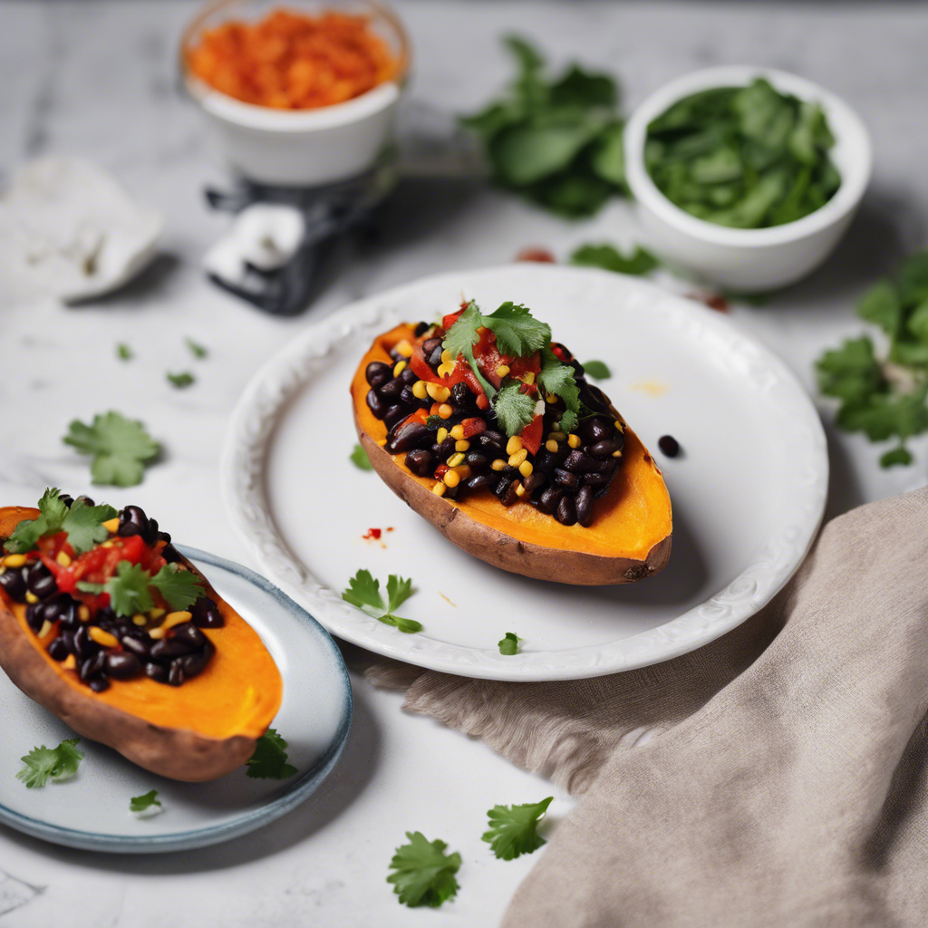 Loaded Sweet Potato with Spicy Black Bean Filling