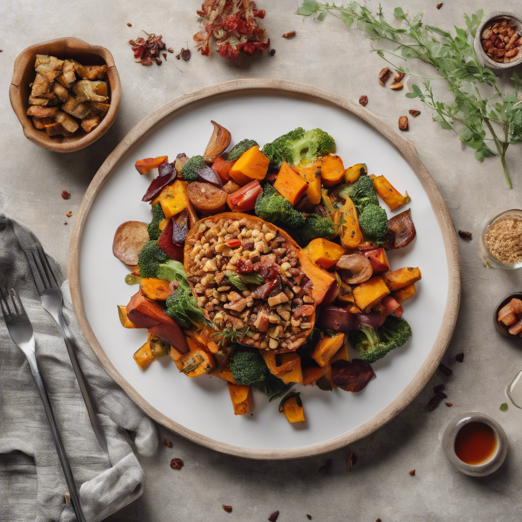 The Loaded Vegan Sweet Potato with Tempeh Bacon is a modern twist on a classic comfort food. This dish originated in the vibrant plant-based food scene, gaining popularity in cities like Portland, Oregon and Los Angeles, California. The sweet potato is baked to perfection and then topped with savory tempeh bacon, creating a smoky and satisfying flavor profile. The side of roasted vegetables adds a delightful crunch and a burst of color to the dish. Chefs across the country have put their own spin on this recipe, incorporating unique seasonings and sauces to elevate the flavors. For the best version of this dish, look for restaurants that prioritize fresh, high-quality ingredients and skillful preparation. The key to nailing this dish lies in achieving the perfect balance of sweet, savory, and smoky flavors, making it a must-try for vegans and non-vegans alike.
