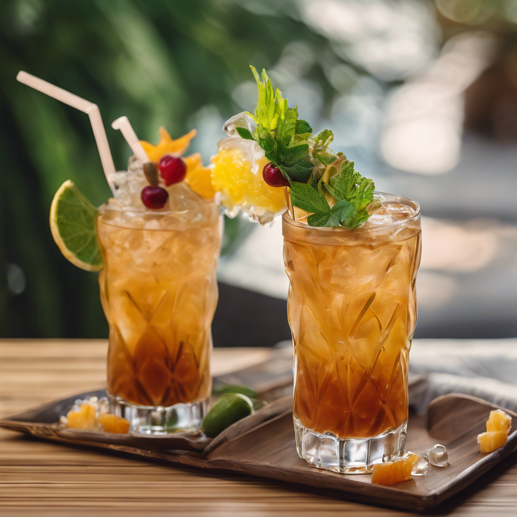 The Mai Tai Swizzle is a tropical cocktail that originated in the 1940s, credited to Victor J. "Trader Vic" Bergeron, a renowned figure in the tiki bar and Polynesian restaurant scene. This iconic drink gained popularity in California and Hawaii before spreading worldwide. The Mai Tai Swizzle typically consists of rum, lime juice, orgeat syrup, and orange liqueur, garnished with a mint sprig and a slice of pineapple. The key to a perfect Mai Tai Swizzle lies in the quality of the rum and the balance of flavors. Today, the best versions of this cocktail can be found in tiki bars and upscale restaurants with a focus on mixology.
