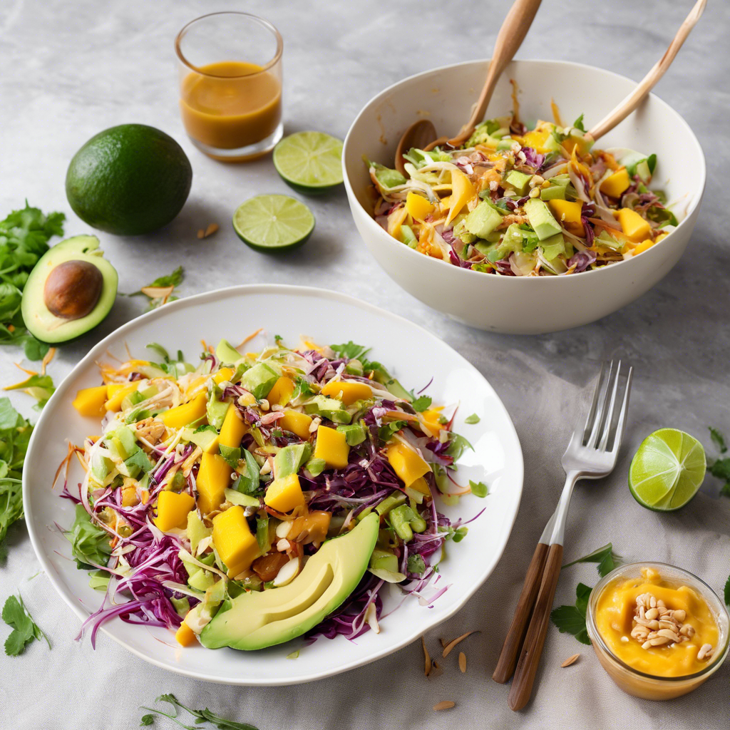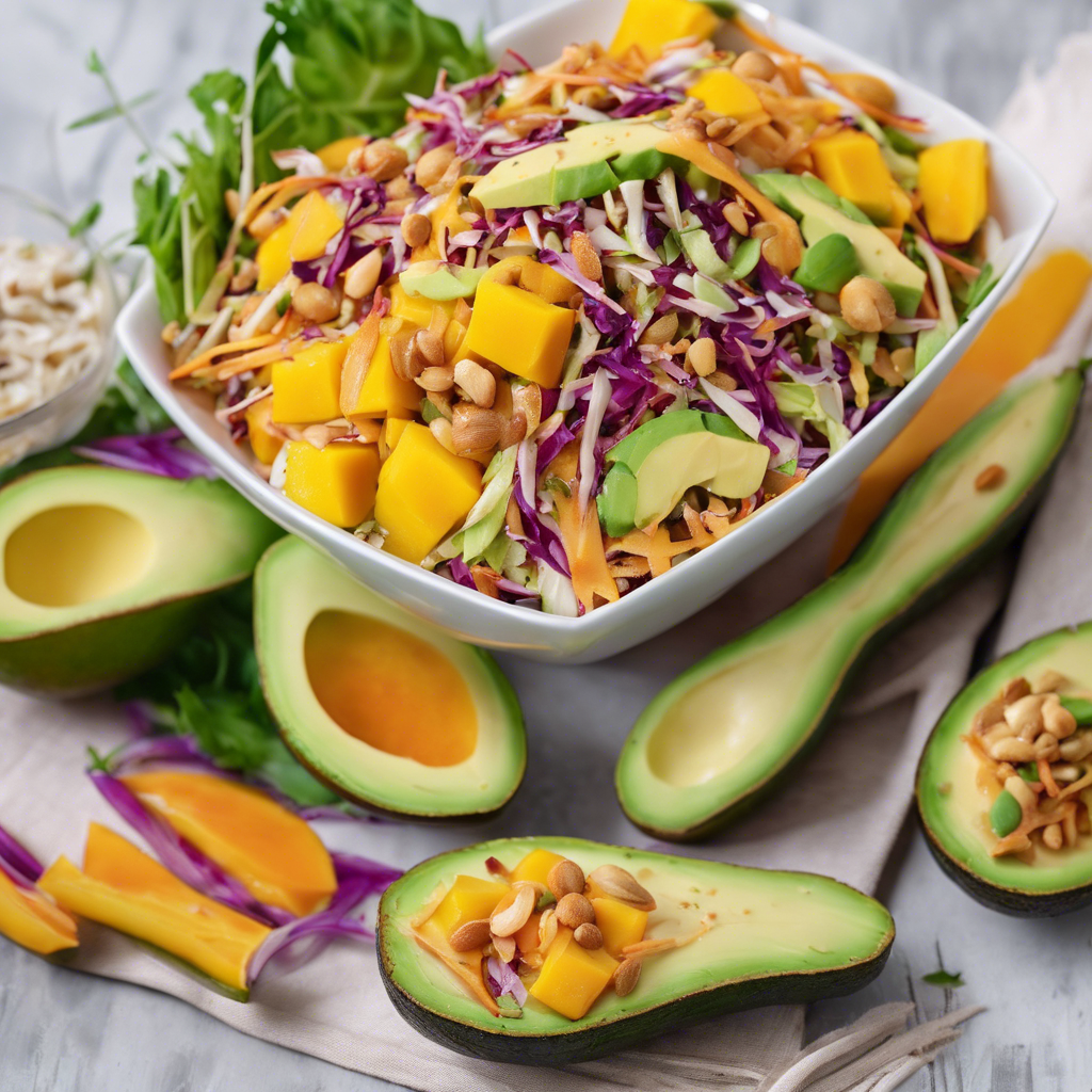 Mango and Avocado Asian Slaw with Spicy Peanut Dressing