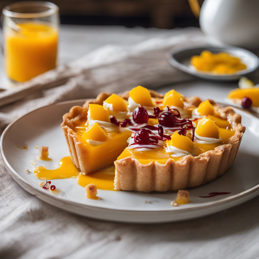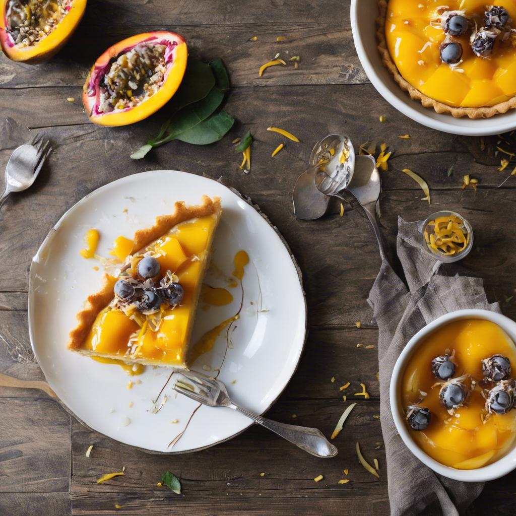 The Mango Coconut Tart with a drizzle of passionfruit sauce is a tropical dessert that originated in the Caribbean and Southeast Asia. This delectable treat combines the sweet, juicy flavor of ripe mangoes with the creamy richness of coconut, all nestled in a buttery, flaky crust. The addition of a tangy passionfruit sauce adds a burst of tropical flavor that perfectly complements the sweetness of the tart. Renowned chefs in the Caribbean, such as Chef Nina Compton, have put their own spin on this dessert, incorporating local ingredients and techniques to create a truly unforgettable culinary experience. For the best version of this dish, seek out a restaurant with a focus on fresh, high-quality ingredients and a passion for innovative flavor combinations. When making this tart at home, be sure to use perfectly ripe mangoes and coconut for the best results. Whether enjoyed in a restaurant or homemade, the Mango Coconut Tart with a drizzle of passionfruit sauce is a delightful indulgence that captures the essence of tropical paradise in every bite.
