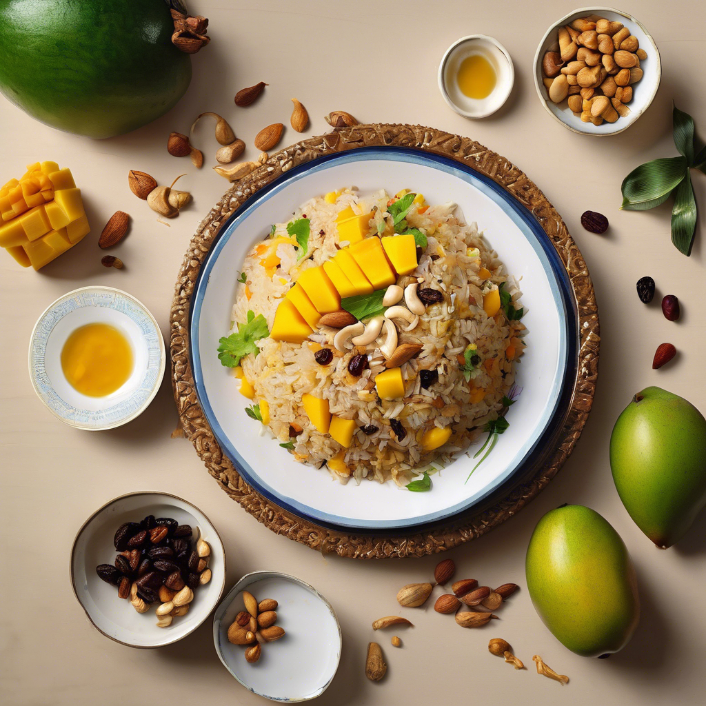 Mango Fried Rice with added cashews and raisins is a delightful fusion dish that combines the sweetness of ripe mangoes with the nuttiness of cashews and the chewy texture of raisins. This unique twist on traditional fried rice has its roots in Thai cuisine, where the combination of sweet and savory flavors is a hallmark. The dish gained popularity in the West as a part of the growing interest in Thai cuisine. Chefs in Thailand and Thai restaurants around the world have perfected this dish, ensuring that the mango is perfectly ripe and the cashews are toasted to bring out their flavor. The best version of this dish can be found in authentic Thai restaurants, where chefs use traditional techniques to create a harmonious blend of flavors and textures. The key to making this dish shine is to use ripe, juicy mangoes, high-quality cashews, and plump, sweet raisins. While the traditional recipe calls for jasmine rice, some variations use brown rice or even quinoa for a healthier twist. Whether enjoyed as a side dish or a main course, Mango Fried Rice with cashews and raisins is a delightful culinary experience that is sure to tantalize the taste buds.