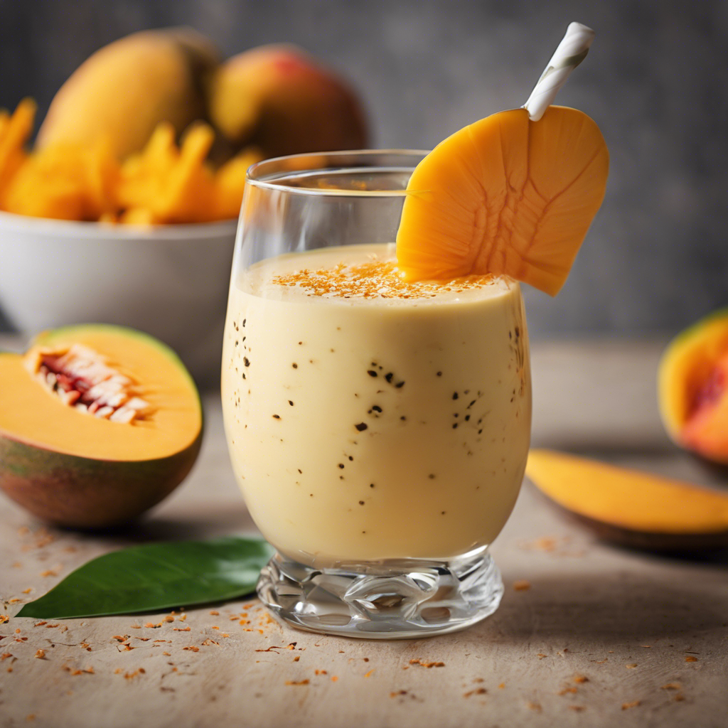 - In a blender, combine 1 cup of ripe mango, 1 cup of plain yogurt, 1/2 cup of milk, 2 tablespoons of sugar, and 1/4 teaspoon of ground cardamom.