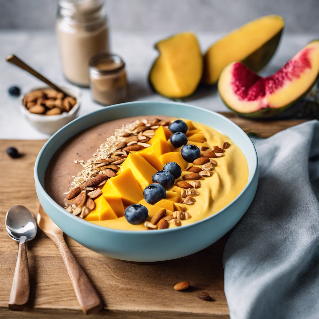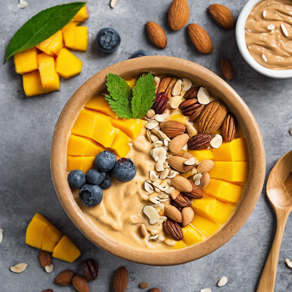 The Mango Protein Smoothie Bowl with a dollop of almond butter is a delightful and nutritious dish that has gained popularity in the health food scene. This vibrant and refreshing bowl is a perfect blend of tropical flavors and protein-packed goodness. Originating in the tropical regions of Southeast Asia, this dish has been embraced by health-conscious foodies worldwide. Renowned chefs and health enthusiasts have put their own spin on this dish, incorporating fresh mangoes, protein powder, and a dollop of creamy almond butter to create a satisfying and energizing meal. The smoothie bowl is often topped with an assortment of superfoods such as chia seeds, granola, and sliced fruits, adding both texture and visual appeal. Today, the best versions of this dish can be found in trendy health cafes and smoothie bars, where the quality of ingredients is paramount. The key to a perfect Mango Protein Smoothie Bowl lies in using ripe, sweet mangoes and high-quality protein powder to achieve a smooth and luscious texture. The addition of a dollop of almond butter not only enhances the flavor but also provides a dose of healthy fats and a delightful nuttiness. For those looking to recreate this dish at home, experimenting with different toppings and alternative methods of incorporating protein, such as Greek yogurt or silken tofu, can offer exciting variations. Whether enjoyed as a post-workout refuel or a satisfying breakfast, the Mango Protein Smoothie Bowl with a dollop of almond butter is a delicious way to nourish the body and indulge in tropical flavors.