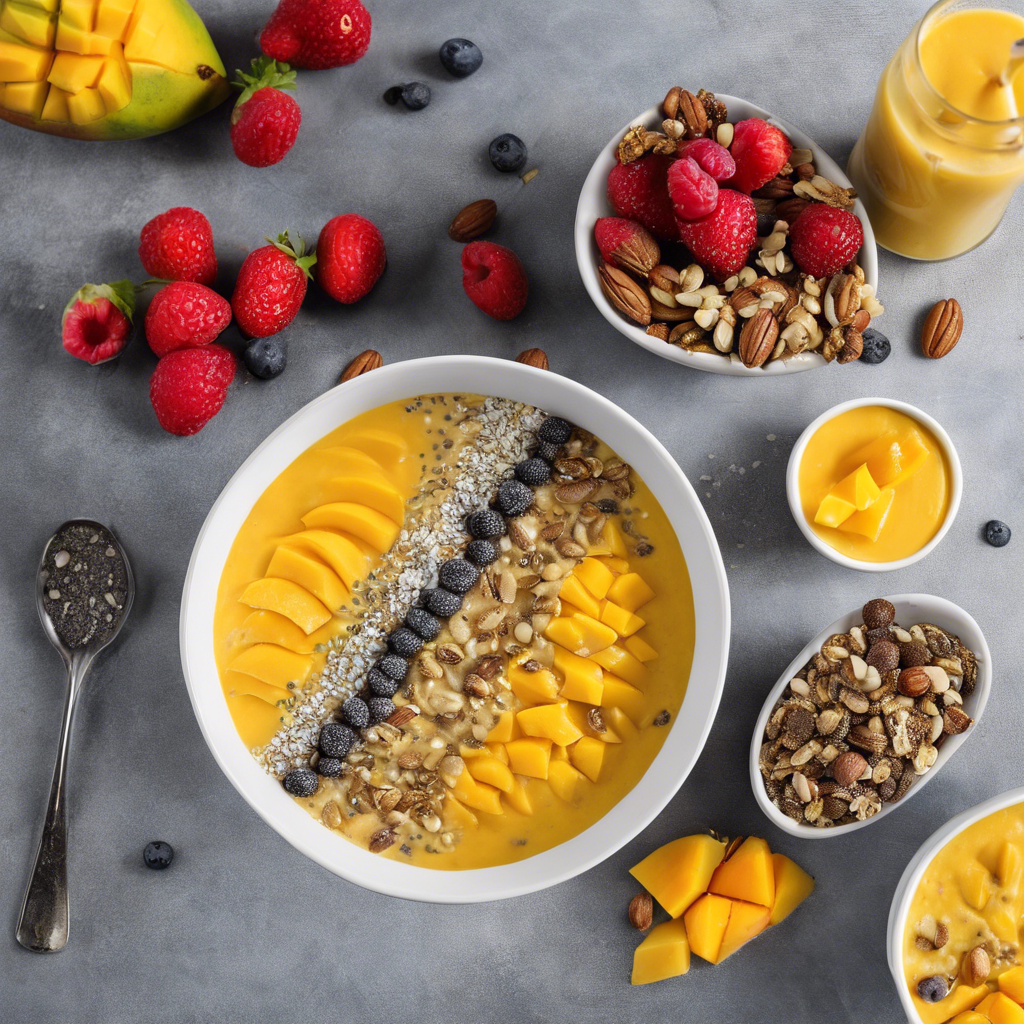 The Mango Protein Smoothie Bowl with added chia seeds has become a popular and nutritious breakfast option. This dish originated in tropical regions where mangoes are abundant, such as Southeast Asia and South America. The addition of chia seeds provides a boost of protein, fiber, and omega-3 fatty acids. Renowned chefs and health-conscious restaurants have embraced this dish, incorporating their own unique twists and presentations. To experience the best version of this dish, seek out establishments that use ripe, sweet mangoes and fresh chia seeds. The key to a perfect Mango Protein Smoothie Bowl lies in the balance of flavors and textures, ensuring a creamy yet slightly crunchy consistency. Whether enjoyed as a post-workout meal or a refreshing breakfast, this smoothie bowl offers a delightful fusion of tropical flavors and wholesome ingredients.