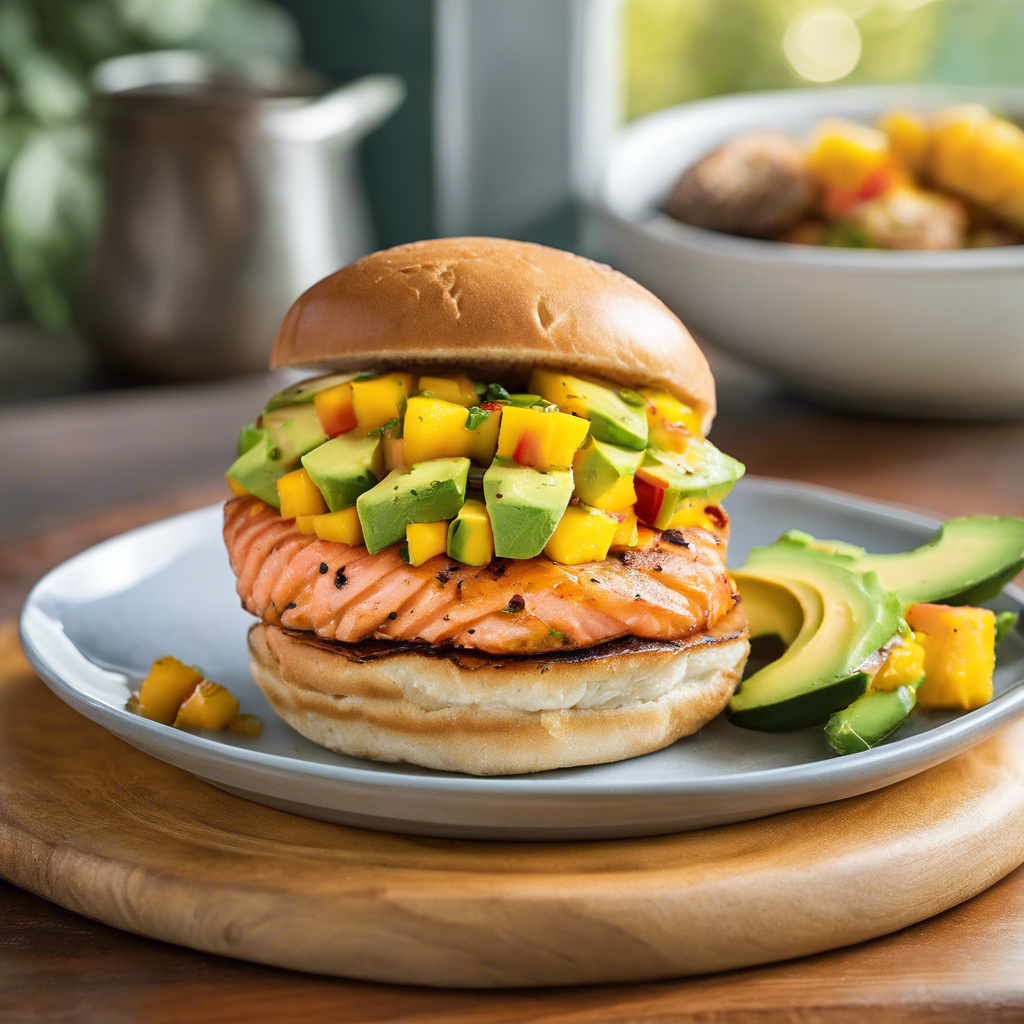 Mango Salsa Salmon Burger with Avocado Slices