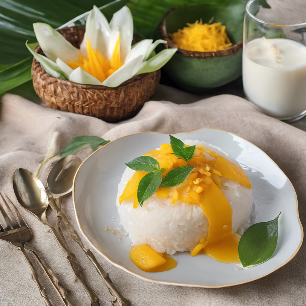 Mango Sticky Rice with coconut milk drizzle is a popular Thai dessert that combines the sweetness of ripe mangoes with the creamy texture of sticky rice, all topped with a luscious coconut milk drizzle. This delectable treat has its origins in Thailand, where it is often enjoyed during the summer months when mangoes are in season. The dish is believed to have been created by talented Thai chefs who sought to showcase the natural flavors of mangoes and rice, while adding a touch of richness with the coconut milk drizzle. Today, this delightful dessert can be found in Thai restaurants around the world, with some of the best versions hailing from the streets of Bangkok or the bustling night markets of Chiang Mai. The key to a perfect Mango Sticky Rice lies in using ripe, juicy mangoes and properly cooked sticky rice, which should be tender yet slightly chewy. The coconut milk drizzle, made from fresh coconut milk and a hint of sugar, adds a luxurious finish to this beloved dessert. For a twist on the traditional recipe, some chefs also infuse the coconut milk with pandan leaves for a fragrant, earthy flavor. Whether enjoyed in a bustling Thai market or made at home, Mango Sticky Rice with coconut milk drizzle is a delightful indulgence that captures the essence of Thai cuisine.