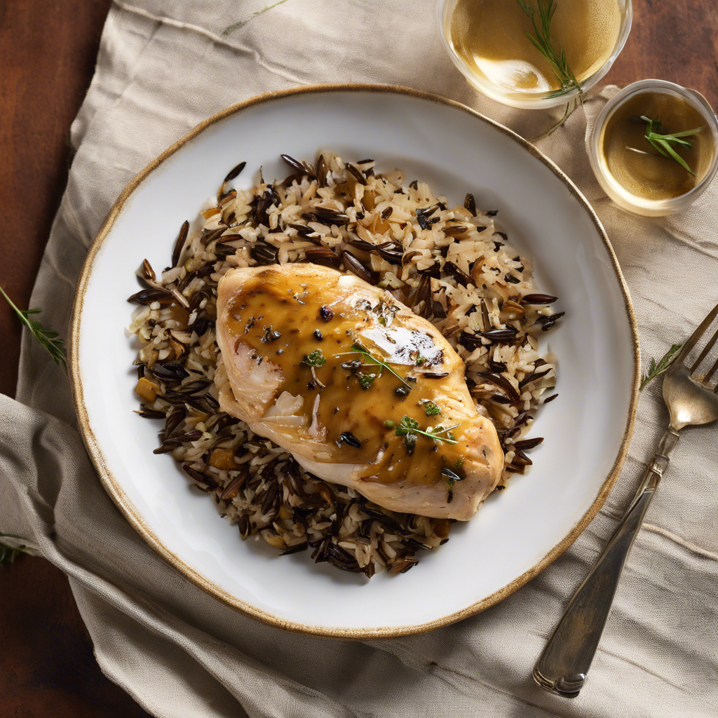 - While the chicken is baking, rinse 1 cup of wild rice under cold water. In a separate pot, bring 2 cups of chicken broth to a boil. Add the rinsed wild rice to the boiling broth, reduce heat to low, cover, and simmer for 30-35 minutes, or until the rice is tender and the liquid is absorbed.