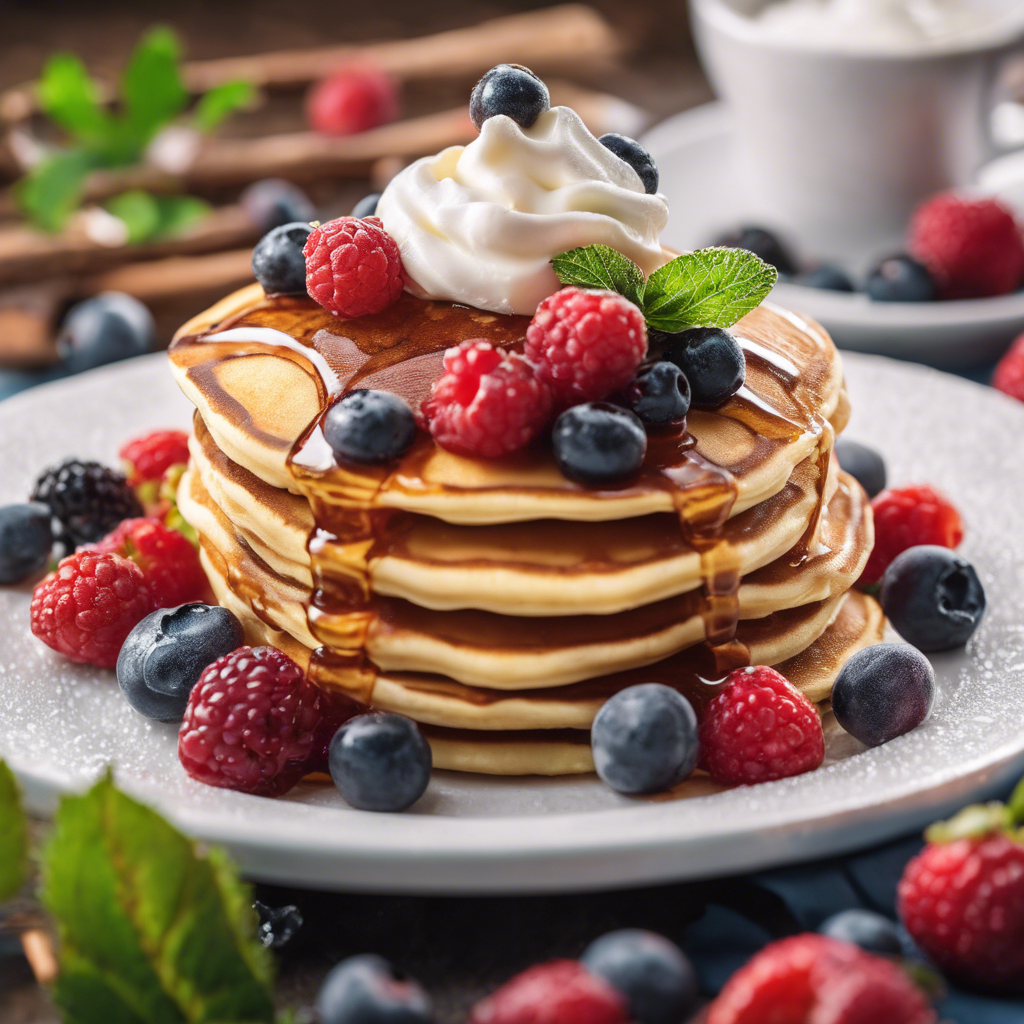 Maple glazed pancakes with fresh berries and whipped cream are a delightful twist on the classic breakfast favorite. This indulgent dish has a rich history, with roots in North American cuisine. Renowned chefs across the continent have put their own spin on this delectable creation, incorporating locally sourced berries and artisanal maple syrup. The best version of this dish can be found in cozy diners and upscale brunch spots, where the pancakes are fluffy, the berries are ripe, and the whipped cream is freshly whipped. The key to perfecting this dish lies in using high-quality maple syrup and a generous serving of plump, juicy berries. Whether enjoyed in a bustling city or a quaint countryside, these pancakes are a true delight for the senses.