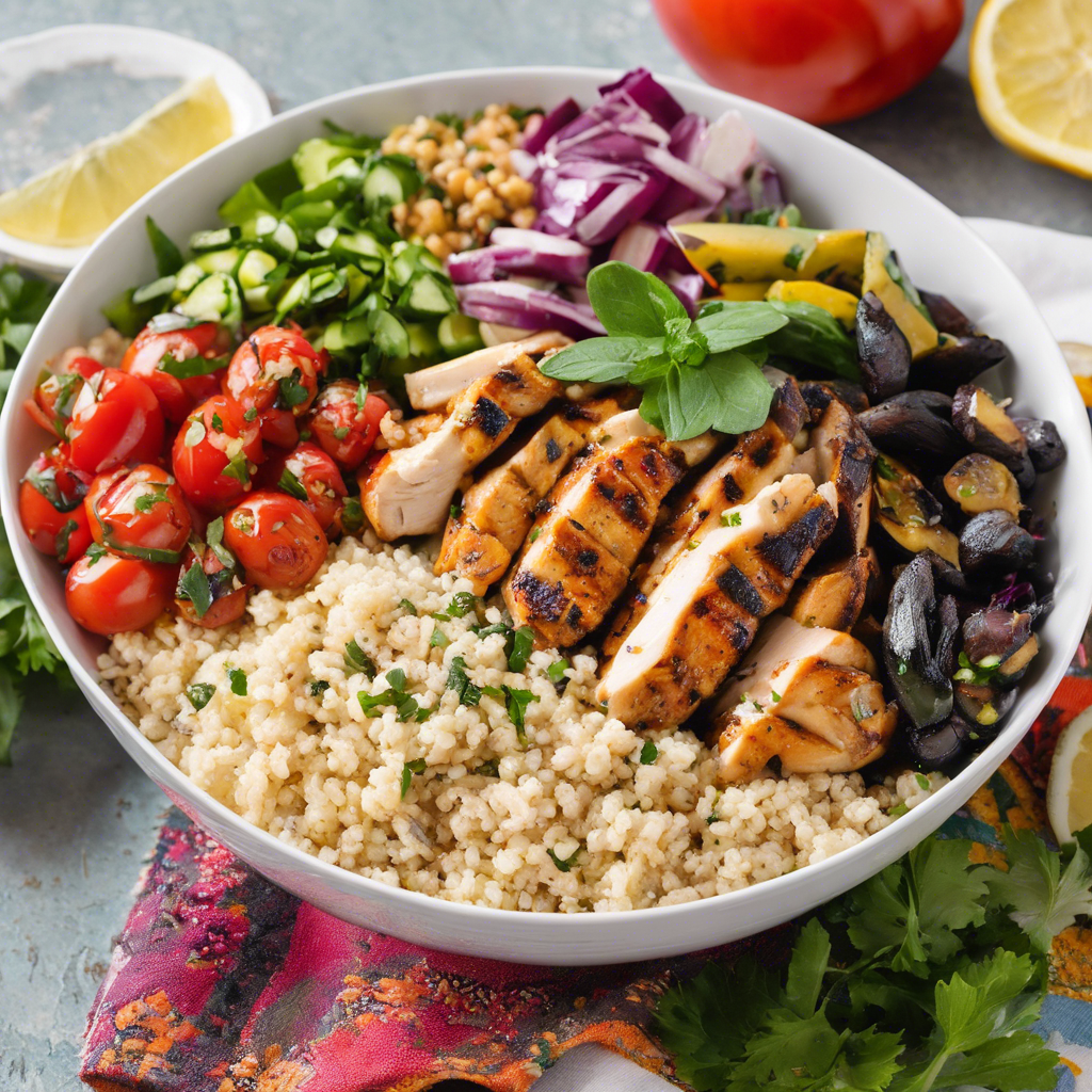 The Mediterranean Bowl with grilled chicken is a modern twist on a classic dish that has its roots in the vibrant and diverse culinary traditions of the Mediterranean region. This flavorful and wholesome bowl typically features tender grilled chicken, paired with a colorful array of fresh vegetables, such as crisp cucumbers, juicy tomatoes, and tangy olives. The dish is often accompanied by creamy hummus, zesty tzatziki, and fragrant herbed rice or couscous. Renowned chefs and restaurants across the Mediterranean have put their own unique spin on this dish, infusing it with their signature flavors and techniques. Today, the best versions of this dish can be found in bustling Mediterranean eateries and trendy health-focused cafes, where the emphasis is on using high-quality, locally-sourced ingredients to create a truly memorable dining experience. When preparing this dish, it's essential to ensure that the grilled chicken is perfectly seasoned and cooked to juicy perfection, as it serves as the star protein component of the bowl. Additionally, the quality of the accompanying sauces, such as the velvety hummus and the refreshing tzatziki, is crucial in elevating the overall flavor profile of the dish. For those seeking a famous alternative method for making this dish, some chefs recommend marinating the chicken in a blend of Mediterranean spices and yogurt to infuse it with an extra layer of tenderness and flavor. Whether enjoyed as a light lunch or a satisfying dinner, the Mediterranean Bowl with grilled chicken is a delightful celebration of the region's culinary heritage, offering a harmonious blend of textures, colors, and tastes that is sure to captivate the palate.