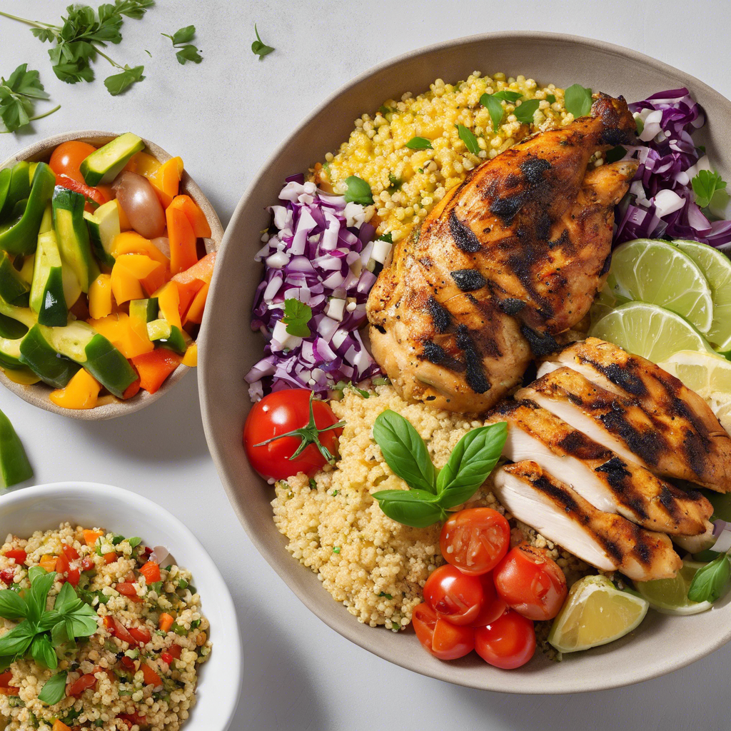 The Mediterranean Chicken and Couscous Bowl is a vibrant and flavorful dish that brings together the diverse culinary influences of the Mediterranean region. This dish typically features tender grilled chicken marinated in a blend of olive oil, lemon, and Mediterranean herbs, served alongside fluffy couscous and an array of fresh vegetables such as tomatoes, cucumbers, and bell peppers. The dish is often finished with a dollop of creamy tzatziki sauce and a sprinkle of crumbled feta cheese for a burst of tangy flavor. Renowned chefs like Yotam Ottolenghi have popularized this dish, infusing it with their own unique twists. For the best version of this dish, head to the coastal regions of Greece or Turkey, where the freshest ingredients elevate the flavors to new heights. The key to nailing this dish lies in the marination of the chicken and the quality of the olive oil used. For a vegetarian alternative, grilled eggplant or falafel can be substituted for the chicken, offering a delightful variation of flavors and textures. Whether enjoyed at a bustling Mediterranean bistro or prepared at home, the Mediterranean Chicken and Couscous Bowl is a celebration of the sun-drenched flavors of the Mediterranean.