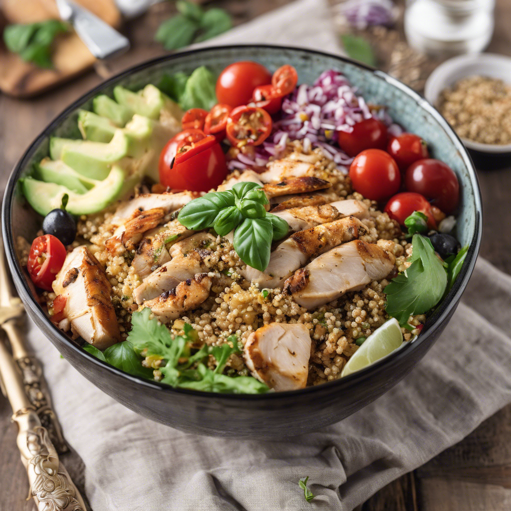 The Mediterranean Chicken and Quinoa Bowl is a wholesome and flavorful dish that has its roots in the vibrant and diverse culinary traditions of the Mediterranean region. This dish typically features tender grilled chicken marinated in a blend of Mediterranean herbs and spices, paired with fluffy quinoa, and an array of fresh and colorful vegetables such as cherry tomatoes, cucumbers, and olives. The dish is often finished with a drizzle of tangy and creamy tzatziki sauce, adding a refreshing and zesty element to the bowl. Renowned chefs and restaurants across the Mediterranean have put their own unique spin on this dish, making it a staple in the region's culinary landscape. For the best version of this dish, seeking out high-quality, fresh ingredients is essential, as they play a crucial role in elevating the flavors of the dish. Additionally, mastering the art of marinating the chicken to infuse it with the rich and aromatic Mediterranean flavors is key to creating an authentic and delicious Mediterranean Chicken and Quinoa Bowl. Whether enjoyed at a seaside taverna in Greece or a bustling market in Morocco, this dish offers a delightful taste of the Mediterranean's vibrant culinary heritage.