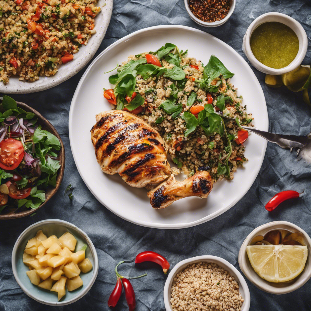 Mediterranean Grilled Chicken with Quinoa Salad is a flavorful and healthy dish that has its roots in the vibrant culinary traditions of the Mediterranean region. This dish typically features tender, marinated grilled chicken paired with a refreshing quinoa salad, bursting with the flavors of fresh herbs, juicy tomatoes, crisp cucumbers, and tangy feta cheese. The dish is often seasoned with a blend of Mediterranean spices, such as oregano, thyme, and garlic, which infuse the chicken with a rich, aromatic taste. Renowned chefs and restaurants across the Mediterranean, from Greece to Italy, have put their own unique spin on this classic dish, making it a staple of the region's diverse gastronomy. For the best version of this dish, look to the coastal regions of Greece, where the chicken is often marinated in a mixture of olive oil, lemon juice, and herbs, then grilled to perfection over an open flame. The quinoa salad, a modern twist on traditional grain-based salads, adds a nutritious and satisfying element to the dish, making it a popular choice for health-conscious diners. When preparing this dish, it's essential to get the marination of the chicken just right, as well as to use high-quality, fresh ingredients for the quinoa salad to achieve the authentic Mediterranean flavors that define this beloved dish. Whether enjoyed at a seaside taverna in Santorini or prepared at home with a personal touch, Mediterranean Grilled Chicken with Quinoa Salad is a delightful culinary journey through the sun-drenched flavors of the Mediterranean.