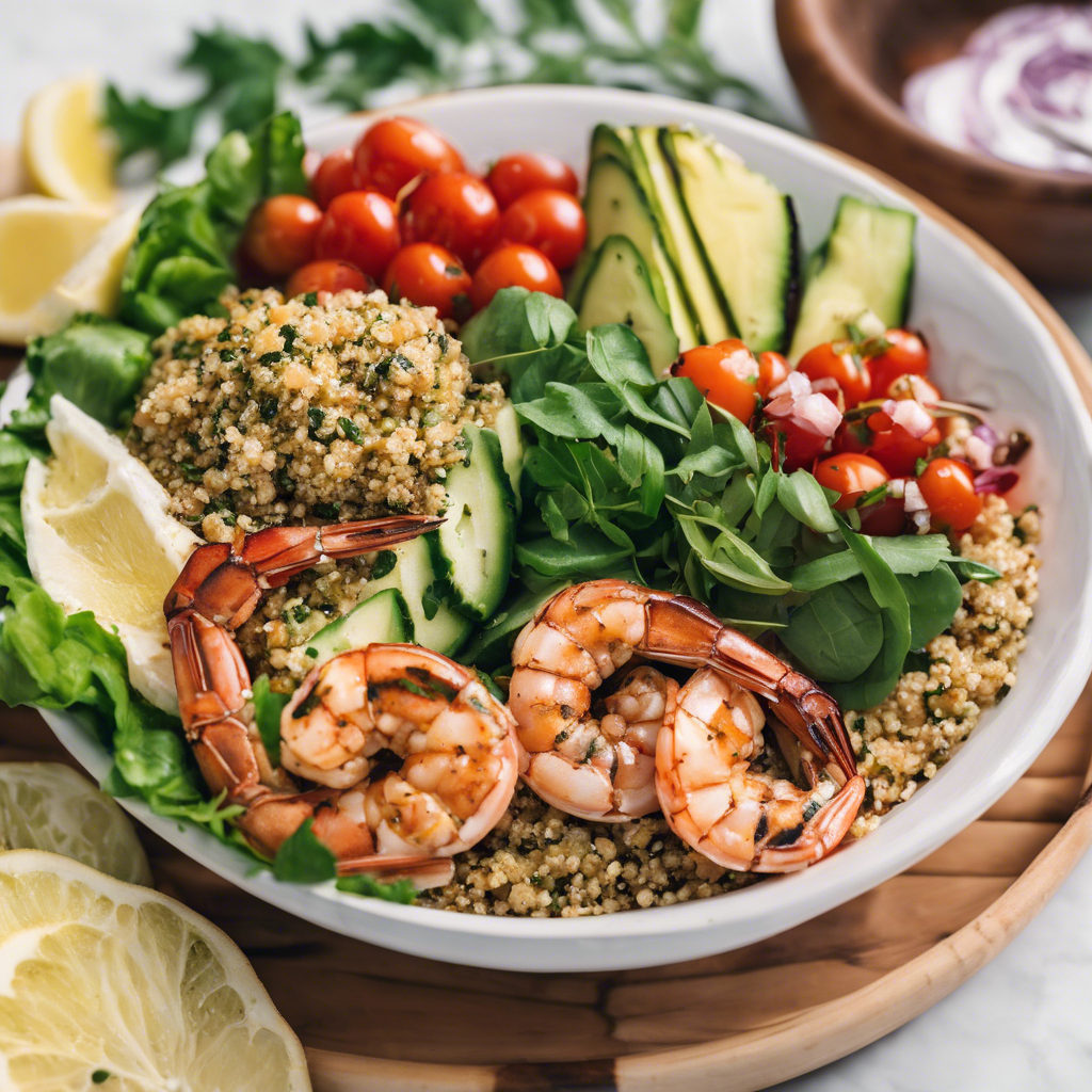 The Mediterranean Quinoa Bowl with Grilled Shrimp is a modern twist on a classic dish, blending the flavors of the Mediterranean with the health benefits of quinoa and the succulent taste of grilled shrimp. This dish has its roots in the coastal regions of the Mediterranean, where fresh seafood and vibrant, flavorful ingredients are abundant. Renowned chefs like Yotam Ottolenghi and Jamie Oliver have popularized this dish, infusing it with their own unique culinary styles. The best versions of this dish can be found in seaside restaurants along the Mediterranean coast, where the shrimp is grilled to perfection and the quinoa is infused with the flavors of sun-ripened tomatoes, briny olives, and fragrant herbs. The key to getting this dish right lies in the quality of the ingredients - fresh, plump shrimp, ripe tomatoes, and authentic Mediterranean spices are essential. For a unique twist, some chefs also incorporate grilled vegetables or a tangy yogurt dressing to elevate the flavors of the dish. Whether enjoyed in a bustling seaside taverna or recreated at home, the Mediterranean Quinoa Bowl with Grilled Shrimp is a delightful fusion of flavors that captures the essence of the Mediterranean.
