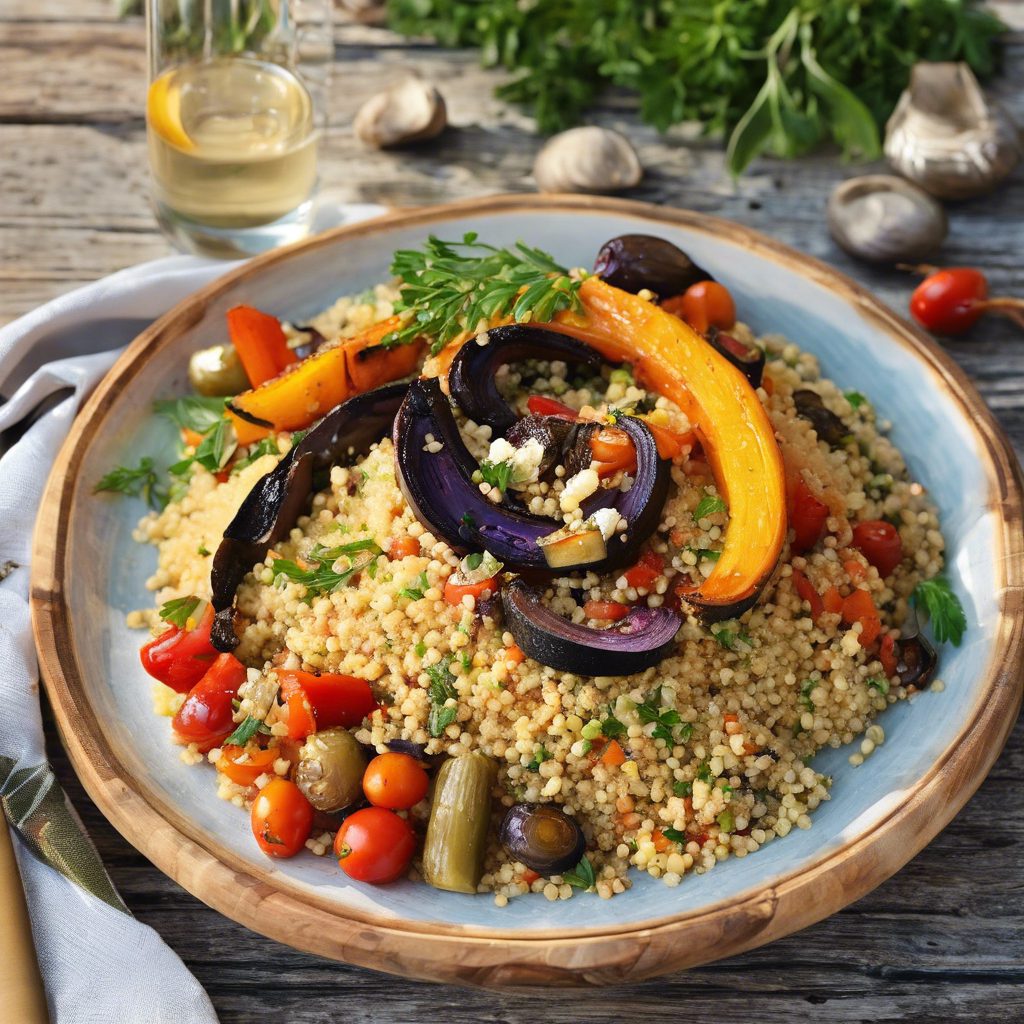 Mediterranean Roasted Vegetable Couscous is a vibrant and flavorful dish that originated in the Mediterranean region. This dish is a celebration of the region's bountiful produce and rich culinary heritage. The history of this dish can be traced back to the traditional cooking methods of Mediterranean home cooks, who would roast a colorful array of vegetables such as bell peppers, zucchini, eggplant, and tomatoes, and then toss them with fluffy couscous. The dish has since gained popularity in restaurants around the world, with chefs adding their own unique twists by incorporating local ingredients and spices. Today, the best versions of this dish can be found in Mediterranean-inspired restaurants, where the freshness and quality of the vegetables are paramount. To make the perfect Mediterranean Roasted Vegetable Couscous, it's essential to use the freshest and highest quality vegetables, as well as to season them with aromatic herbs and spices like oregano, thyme, and cumin. This dish is a versatile and satisfying option for vegetarians and vegans, and it can be enjoyed as a main course or a flavorful side dish. Whether enjoyed in a bustling Mediterranean eatery or prepared at home with a personal touch, Mediterranean Roasted Vegetable Couscous is a delightful representation of the region's vibrant culinary traditions.