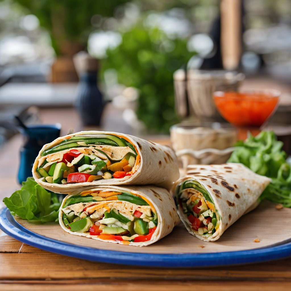 The Mediterranean Veggie Wrap with hummus is a delightful twist on the classic dish, offering a burst of flavors and textures. This delectable wrap features a harmonious blend of fresh vegetables, such as crisp lettuce, juicy tomatoes, crunchy cucumbers, and tangy red onions, all enveloped in a soft, warm pita. The creamy hummus adds a rich and savory element, elevating the wrap to new heights. This variation originated in the Mediterranean region, where skilled chefs sought to create a vegetarian option that celebrated the region's vibrant produce and bold flavors. Today, the best versions of this dish can be found in authentic Mediterranean eateries, where the quality of the hummus is paramount. The key to a perfect Mediterranean Veggie Wrap with hummus lies in the balance of flavors and the freshness of the ingredients. Whether enjoyed as a quick lunch or a satisfying dinner, this wrap is a true culinary delight that captures the essence of Mediterranean cuisine.
