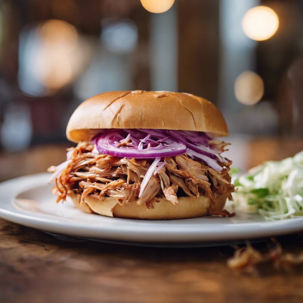 The Memphis Pulled Pork Sandwich with coleslaw topping has a rich history rooted in the heart of Tennessee. This iconic dish features tender, slow-cooked pork shoulder, seasoned with a blend of spices and smoked to perfection. The addition of tangy and creamy coleslaw provides a refreshing contrast to the savory pork, creating a harmonious balance of flavors and textures. Renowned Memphis chefs and pitmasters, such as the legendary Charlie Vergos, have elevated this classic sandwich to culinary fame. Today, the best versions of this dish can be found in authentic barbecue joints and eateries across Memphis, where the art of smoking meat is a time-honored tradition. To achieve the perfect Memphis Pulled Pork Sandwich, mastering the art of smoking the pork and crafting a flavorful coleslaw are essential. Alternatively, some chefs opt for a vinegar-based slaw for a unique twist on this beloved Southern staple. Whether enjoyed at a bustling barbecue joint or prepared at home, the Memphis Pulled Pork Sandwich with coleslaw topping is a true celebration of Southern barbecue culture.