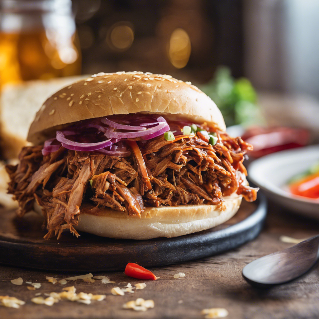 The Memphis Pulled Pork Sandwich with spicy BBQ sauce is a beloved Southern classic that originated in Memphis, Tennessee. This iconic dish features tender, slow-cooked pork shoulder, seasoned with a blend of smoky spices and then pulled apart into succulent strands. The spicy BBQ sauce, a signature element of this sandwich, adds a fiery kick to the rich, savory flavor profile. Renowned Memphis chefs and pitmasters, such as the legendary Charlie Vergos, have perfected the art of crafting this mouthwatering delicacy. To experience the best version of this dish, head to Memphis and visit renowned BBQ joints like Central BBQ or The Bar-B-Q Shop. The key to achieving authentic Memphis flavor lies in the slow smoking process and the bold, spicy BBQ sauce, which typically includes ingredients like cayenne pepper, paprika, and brown sugar. For a unique twist, some chefs incorporate regional spices like Memphis-style dry rub to enhance the pork's robust taste. Whether enjoyed at a bustling eatery or prepared at home, the Memphis Pulled Pork Sandwich with spicy BBQ sauce is a true Southern gem that continues to captivate food enthusiasts worldwide.