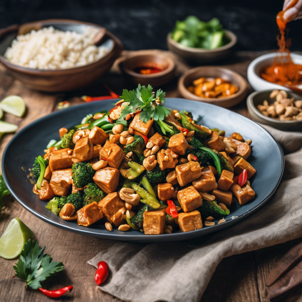 A delicious and spicy stir-fry with crispy tofu and a flavorful peanut sauce.
