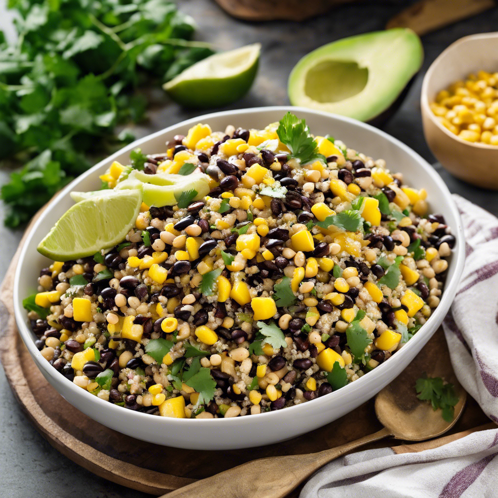 - Pour the dressing over the corn, quinoa, and black beans, and toss to combine. Season with salt and pepper to taste.
