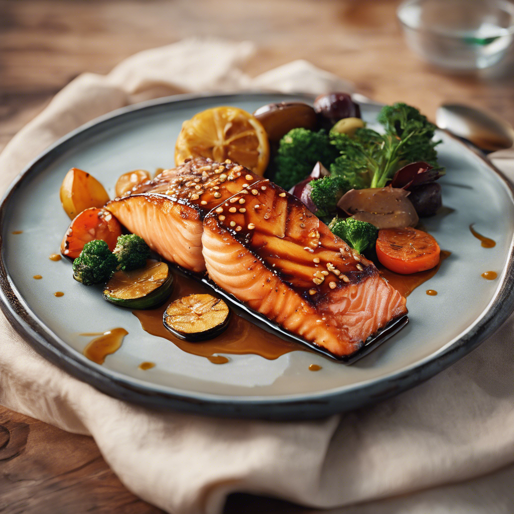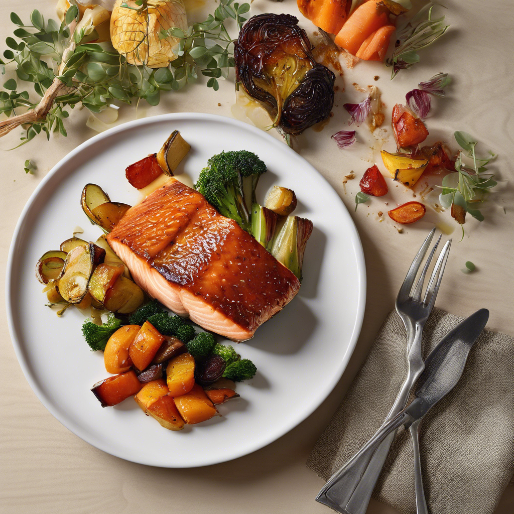 The history of Miso Glazed Salmon dates back to ancient Japan, where miso, a traditional fermented soybean paste, was used as a flavoring agent. The dish gained popularity in the United States in the 1980s, as chefs began experimenting with Japanese flavors. Today, it is a staple in many upscale restaurants, particularly in coastal regions known for their fresh seafood. One renowned chef known for his Miso Glazed Salmon is Nobu Matsuhisa, whose eponymous restaurant Nobu has locations worldwide. His signature dish features a perfect balance of sweet and savory flavors, with the miso glaze caramelizing to create a delicious crust on the salmon. When it comes to serving Miso Glazed Salmon with roasted vegetables, the key is to achieve a harmonious blend of textures and flavors. The salmon should be tender and flaky, with a caramelized exterior from the miso glaze. The roasted vegetables, such as carrots, broccoli, and bell peppers, should be perfectly seasoned and slightly charred for added depth. For the best version of this dish, one might consider visiting a high-end Japanese fusion restaurant known for its expertise in seafood. Alternatively, home cooks can experiment with different types of miso and cooking methods to find their perfect balance of flavors. Whether enjoyed at a Michelin-starred establishment or prepared at home, Miso Glazed Salmon with roasted vegetables is a delightful culinary experience that showcases the beauty of Japanese-inspired cuisine.