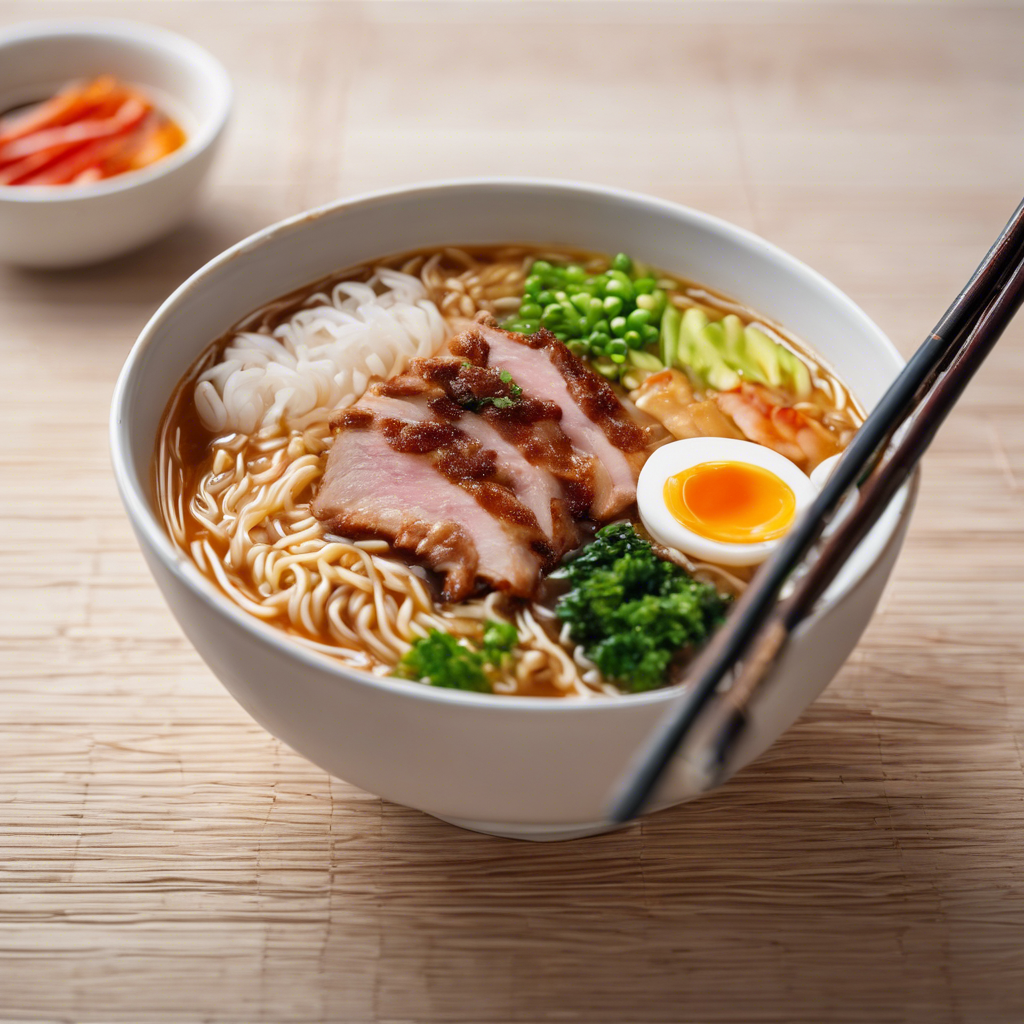 - Ladle the warm miso broth over the noodles in each bowl. Top with the cooked pork belly slices, soft-boiled eggs, green onions, nori seaweed, and any optional toppings such as corn kernels and bean sprouts.