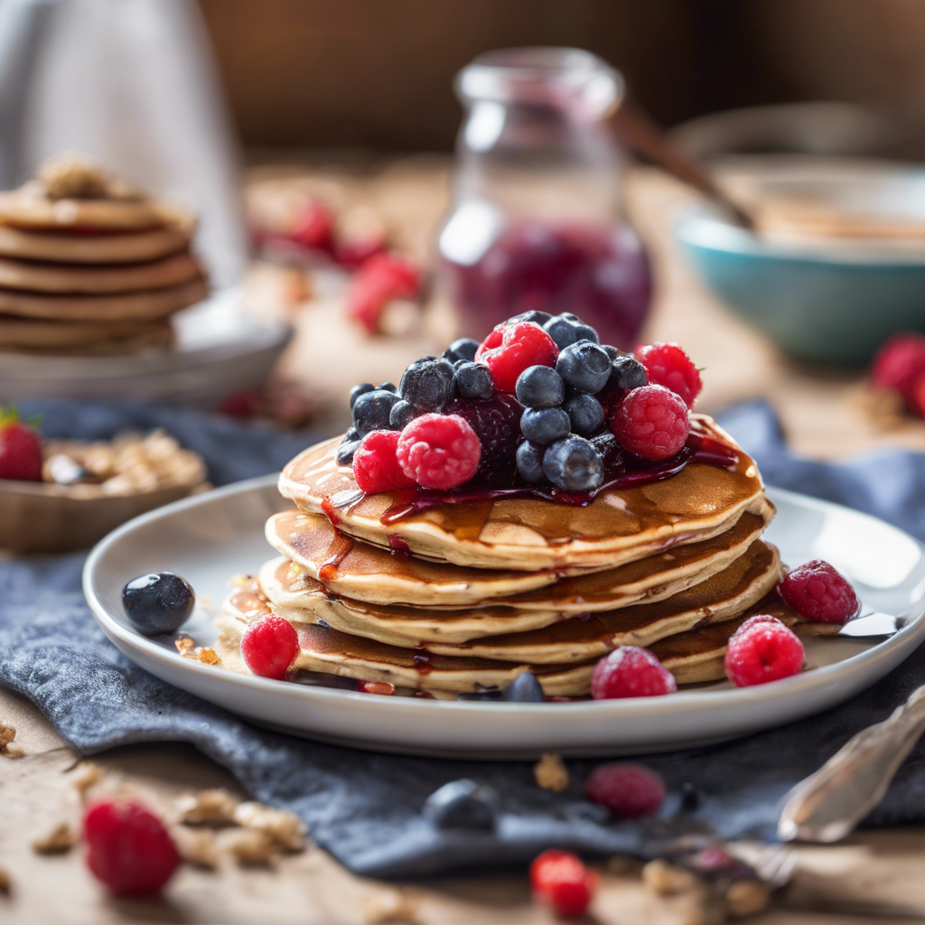 Mixed Berry Oat Pancakes are a delightful twist on the classic breakfast favorite. This dish originated in the United States, where chefs and home cooks alike sought to create a healthier and more flavorful pancake option. The addition of mixed berries and oats not only adds a burst of fruity sweetness but also boosts the nutritional value of the pancakes. The Pacific Northwest region is particularly known for its abundance of fresh berries, making it a perfect place to enjoy these pancakes. To make the best version of this dish, it's crucial to use ripe, juicy mixed berries and high-quality oats for a hearty texture. Some chefs also recommend adding a touch of vanilla or cinnamon for extra flavor. Whether enjoyed at a cozy brunch spot or homemade in your own kitchen, Mixed Berry Oat Pancakes are a delightful way to start the day.