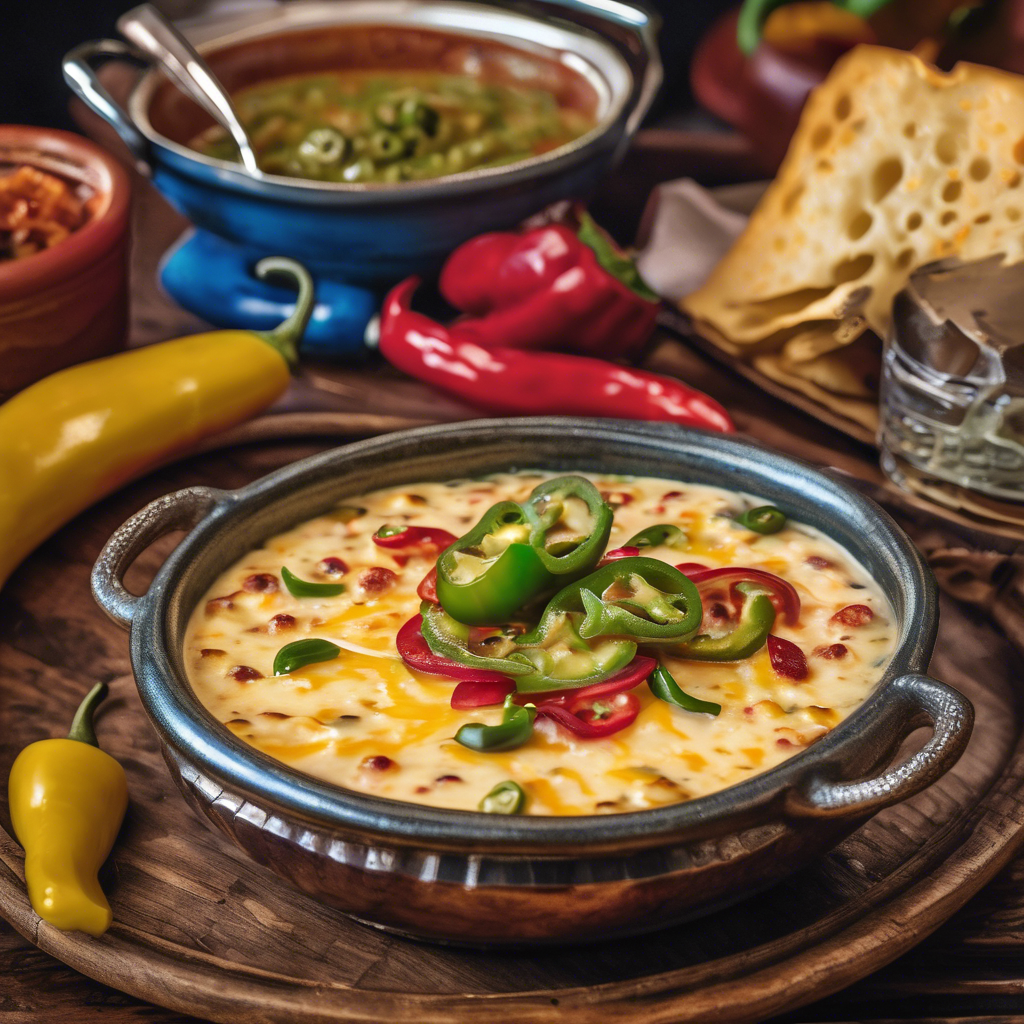 Mixed Cheese Queso Fundido with Extra Spicy Jalapeno Peppers