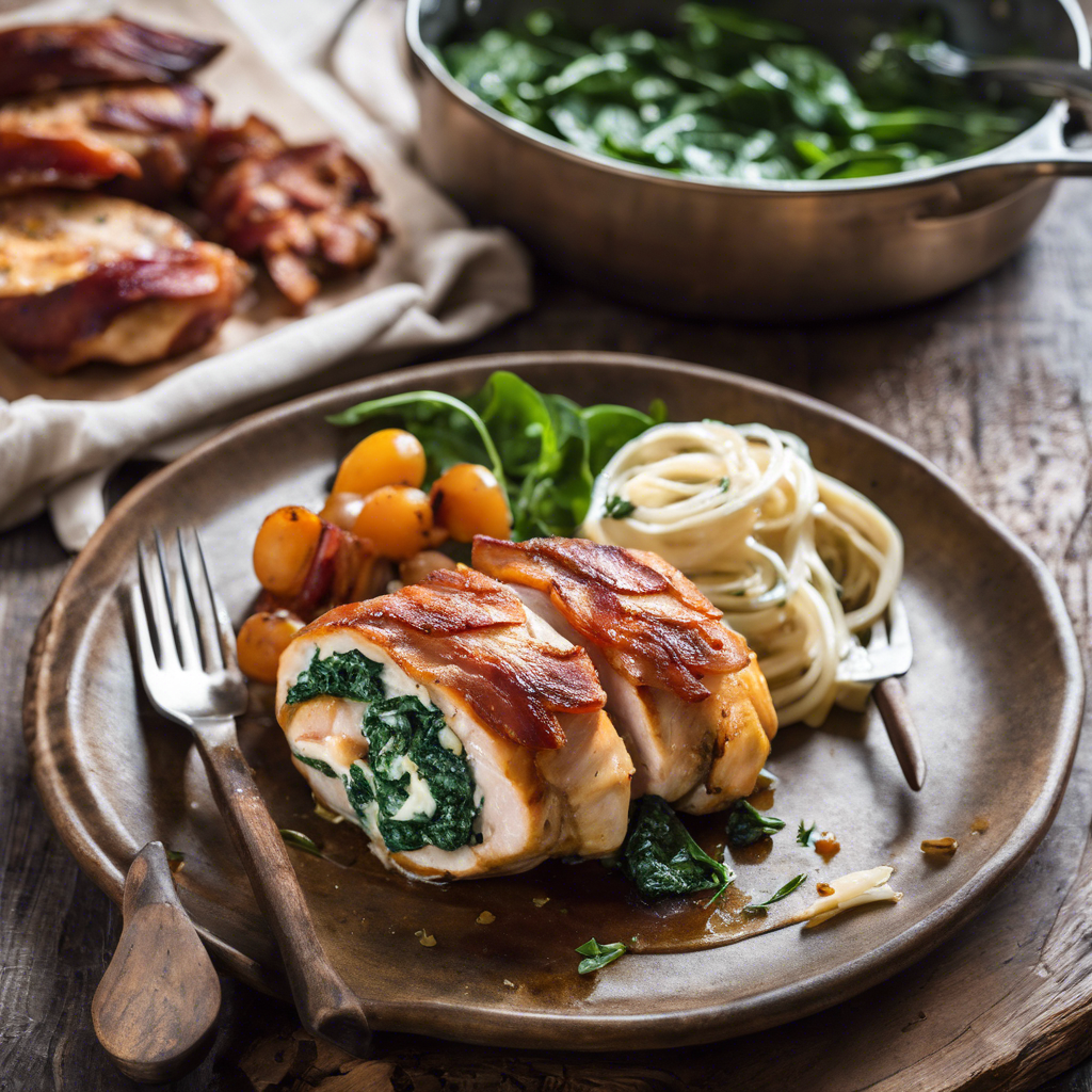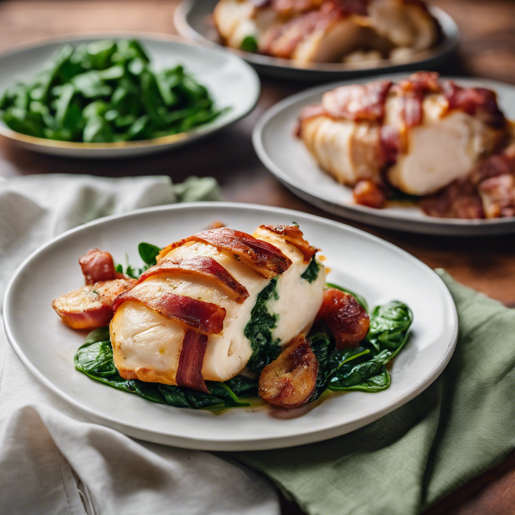 The history of Mozzarella and Spinach Stuffed Chicken Breast wrapped in bacon is a delightful tale of culinary creativity. This dish combines the rich flavors of Italy with the savory goodness of bacon, resulting in a mouthwatering masterpiece. Originating in the Italian countryside, this recipe has been passed down through generations, with each family adding their own unique twist. Renowned chefs in Tuscany and Sicily have perfected this dish, using the freshest mozzarella, locally sourced spinach, and the finest bacon. Today, the best versions of this dish can be found in authentic Italian trattorias, where skilled chefs meticulously prepare each chicken breast to perfection. The key to this dish lies in the quality of the ingredients, especially the creamy mozzarella and the flavorful bacon. For a unique twist, some chefs also add sun-dried tomatoes or basil to elevate the flavors even further. Whether enjoyed in a rustic Italian village or a bustling city trattoria, this dish is a true celebration of Italian culinary tradition.