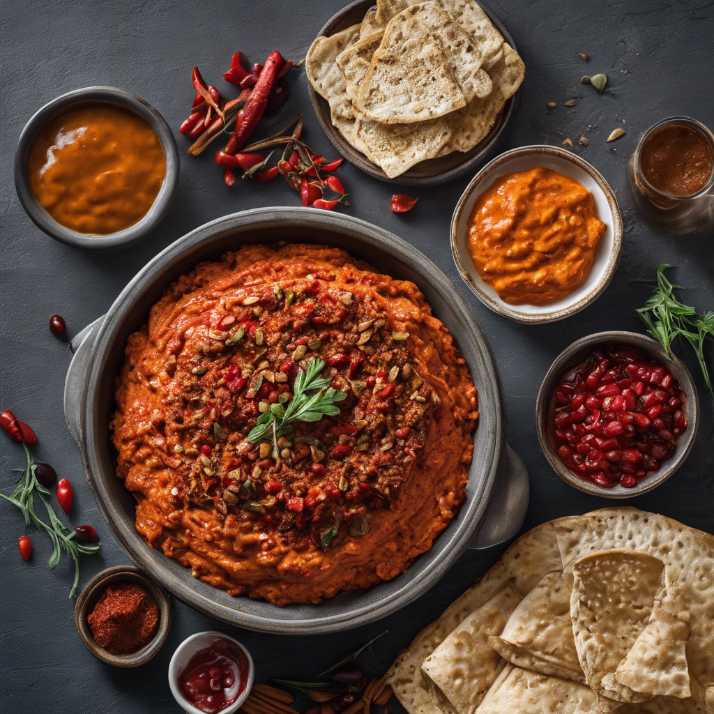 Muhammara is a Middle Eastern dip with a rich history dating back to the 12th century. Originating from Aleppo, Syria, this vibrant red spread is made from roasted red peppers, walnuts, breadcrumbs, olive oil, and pomegranate molasses, creating a harmonious blend of sweet, tangy, and nutty flavors. Renowned chefs like Yotam Ottolenghi have popularized this dish, and it has become a staple in Middle Eastern cuisine. The best versions of Muhammara can be found in traditional Syrian and Lebanese restaurants, where it is served alongside fresh pita bread or as a condiment for grilled meats. The key to a perfect Muhammara lies in the balance of sweet and savory notes, achieved by using high-quality ingredients and mastering the roasting process for the peppers and walnuts. For a unique twist, some chefs incorporate ingredients like cumin or Aleppo pepper for added depth of flavor. Whether enjoyed as a dip, spread, or sauce, Muhammara continues to captivate food enthusiasts worldwide with its irresistible taste and cultural significance.