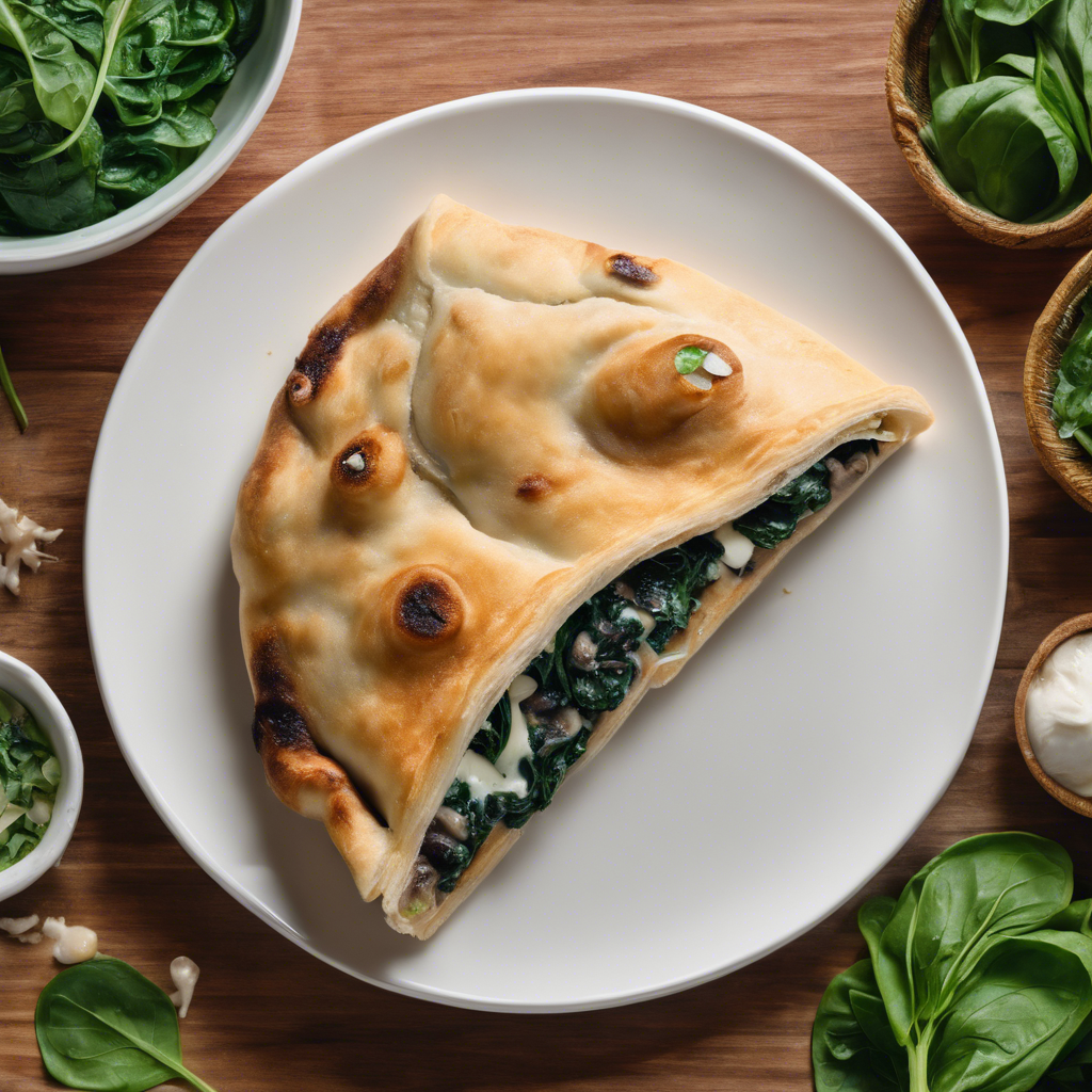 The history of the Mushroom and Mozzarella Calzone with spinach added can be traced back to the traditional Italian calzone, a folded pizza filled with various ingredients. The addition of spinach to this classic dish brings a delightful earthy flavor and a boost of nutrients. Renowned chefs in Italy and Italian-American communities have perfected this recipe, incorporating fresh spinach, savory mushrooms, and gooey mozzarella cheese into a perfectly baked calzone. Today, the best versions of this dish can be found in authentic Italian pizzerias and restaurants that prioritize using high-quality, fresh ingredients. The key to a delicious Mushroom and Mozzarella Calzone with spinach lies in the balance of flavors and the quality of the dough, which should be crispy on the outside and soft on the inside. Whether enjoyed in Italy or at a local Italian eatery, this calzone variation is a must-try for any pizza lover.