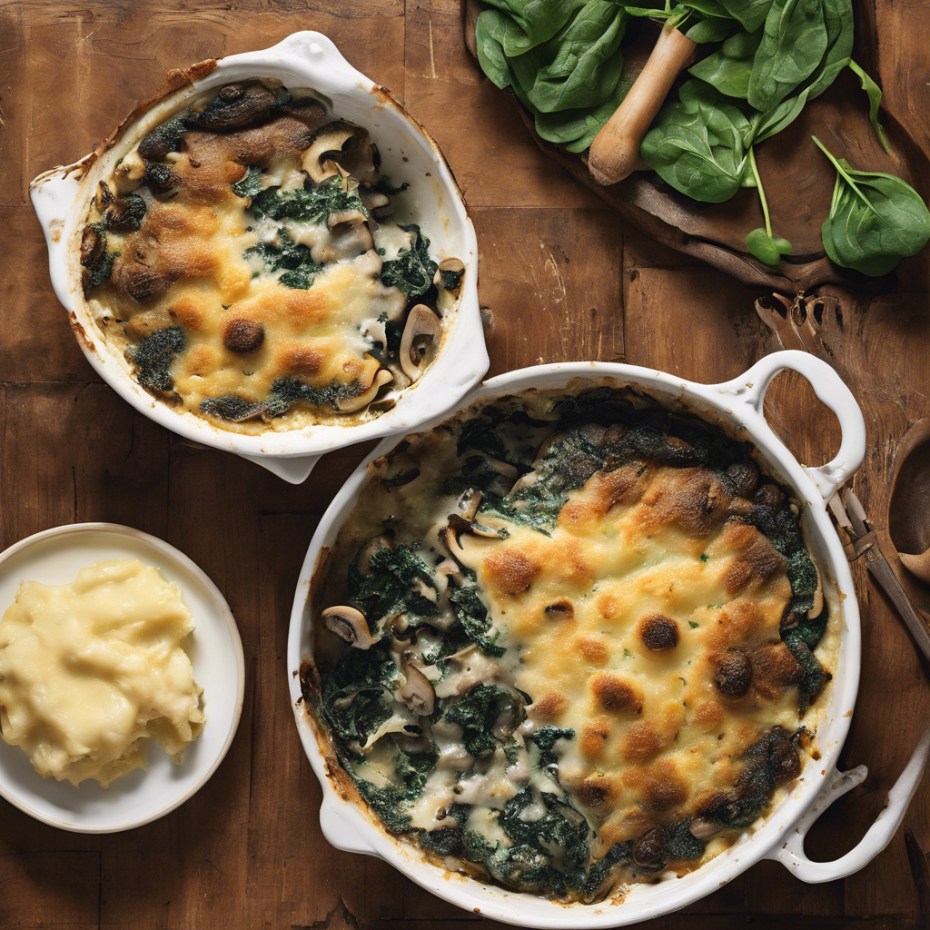 Mushroom and Spinach Gratin is a classic French dish that has been enjoyed for centuries. This delectable dish originated in the French countryside, where fresh mushrooms and spinach were abundant. The combination of earthy mushrooms, tender spinach, and creamy béchamel sauce creates a rich and satisfying flavor profile that has stood the test of time. Renowned chefs such as Julia Child and Jacques Pépin have popularized this dish, incorporating their own unique twists and techniques. Today, Mushroom and Spinach Gratin can be found on the menus of upscale French restaurants around the world, with each chef adding their own creative flair to the traditional recipe. The key to a perfect Mushroom and Spinach Gratin lies in the quality of the ingredients. Fresh, flavorful mushrooms and tender, vibrant spinach are essential for creating a gratin that truly shines. Additionally, achieving the perfect balance of creamy béchamel sauce and golden, crispy topping is crucial for a successful dish. For those looking to explore alternative methods, incorporating different types of cheese or adding a hint of nutmeg can elevate the flavor profile of the gratin. Whether enjoyed as a side dish or a vegetarian main course, Mushroom and Spinach Gratin continues to be a beloved staple in French cuisine.