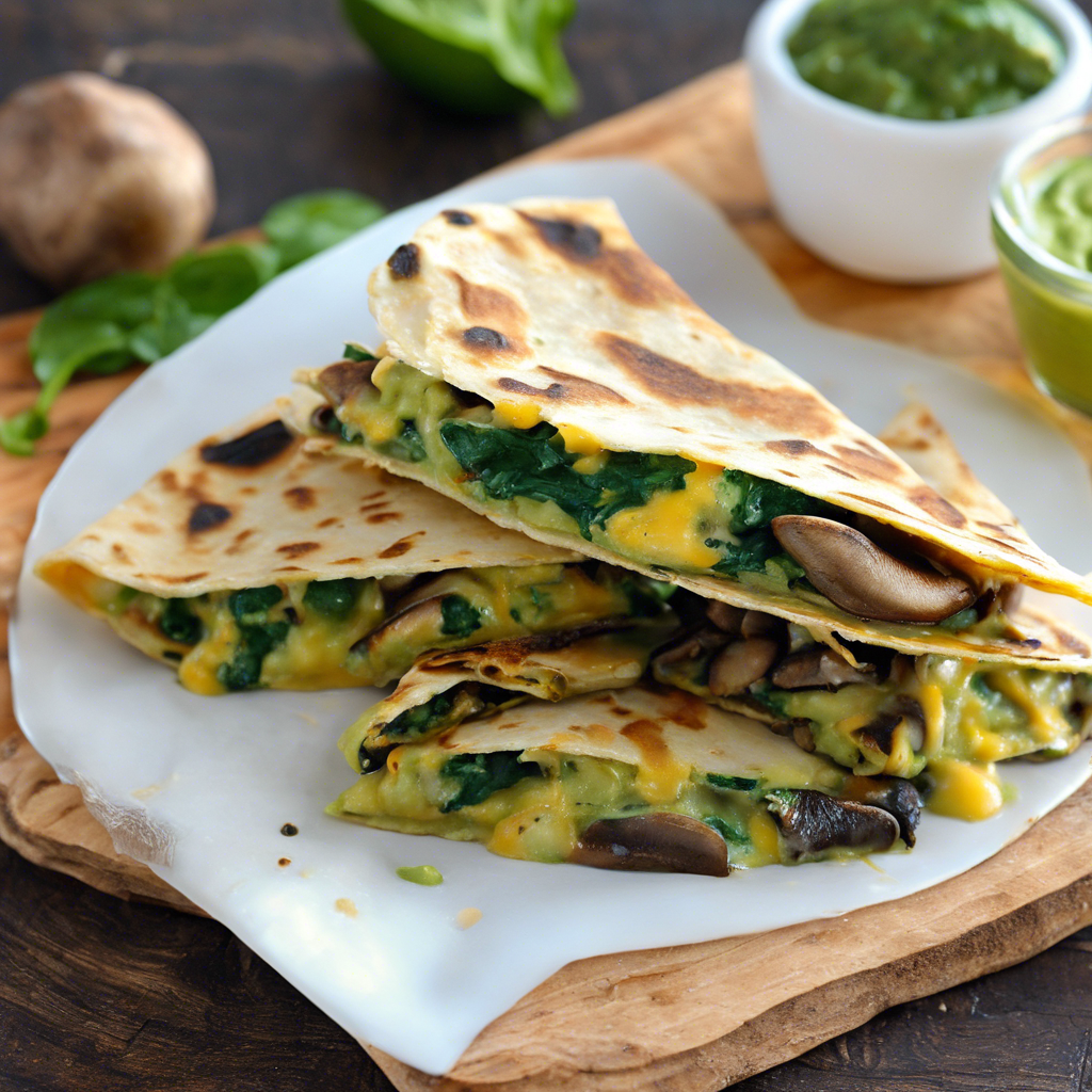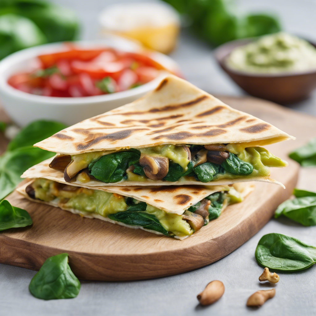 The Mushroom and Spinach Quesadilla is a delightful fusion of Mexican and Mediterranean flavors. This dish originated in the vibrant culinary scene of Mexico, where chefs sought to combine traditional quesadillas with a healthy and flavorful twist. The earthy richness of sautéed mushrooms and the vibrant freshness of spinach create a perfect balance of flavors, while the gooey melted cheese holds it all together in a warm, crispy tortilla. The addition of a side of creamy guacamole adds a luxurious touch, elevating the dish to a whole new level. Today, this delectable creation can be savored in top-notch Mexican restaurants or crafted at home with fresh, high-quality ingredients. Whether enjoyed as a quick snack or a satisfying meal, the Mushroom and Spinach Quesadilla with a side of guacamole is a true culinary delight.