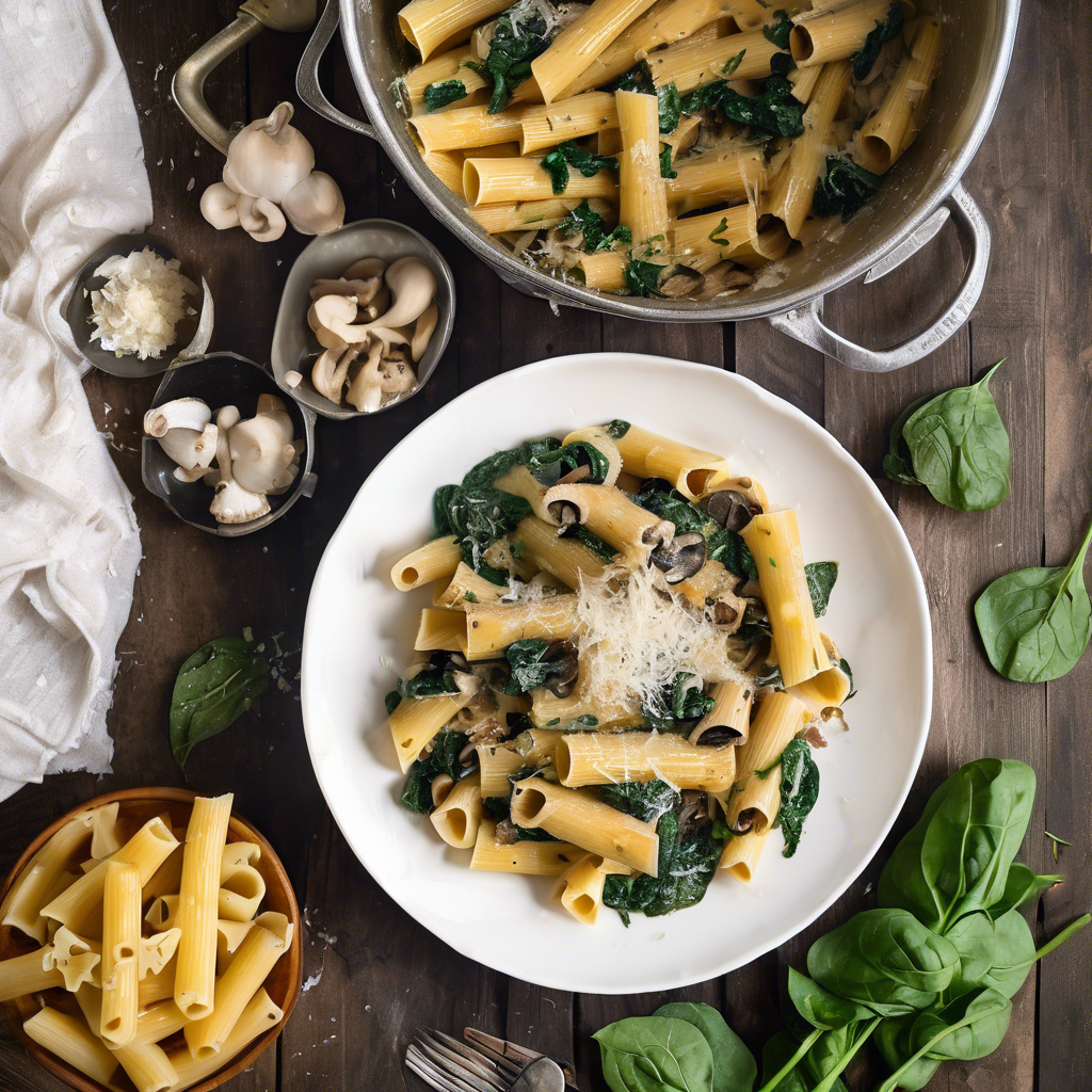 Mushroom and Spinach Rigatoni with Extra Parmesan Cheese
